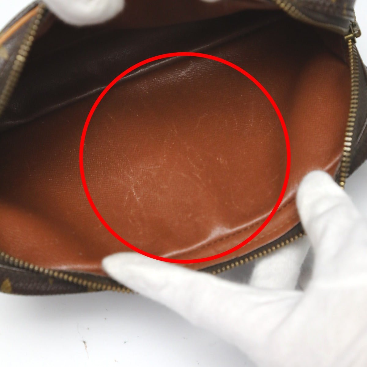 | Condition | 【Notices】 Leather part is burned and rubbed (see images 4-7, 9, 10, 12-15, and 21) The zipper part is peeling off (see image 12) There are scratches on the inner (see images 16-18) 【Outside】 (Surface)Discoloration by sunburn, Rubbed 【Inside/Other】 |