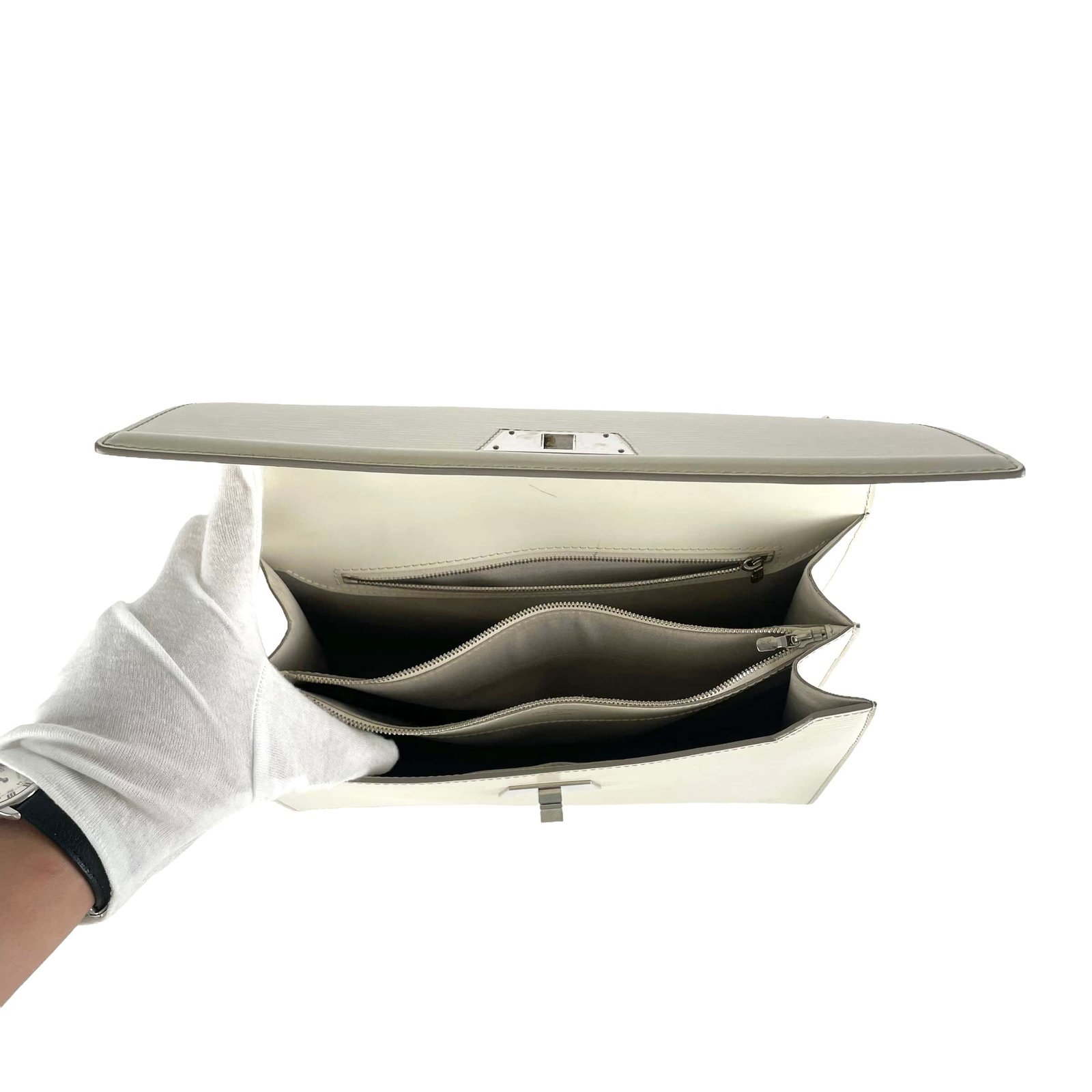 Condition: 8.5/10 Great Condition- rubbing on corners, pens marks under flap/interior, some glazing wear on handle, light wear throughout exterior leather, excellent structure