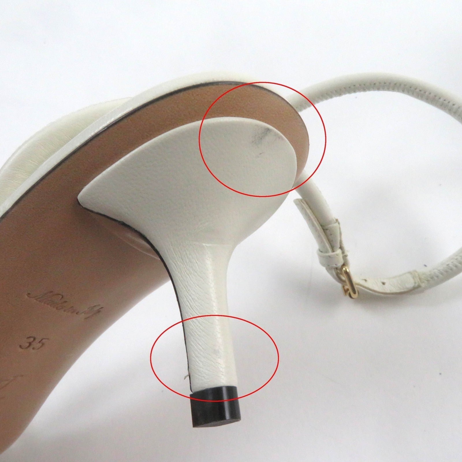 | Condition | 【Notices】 There is a rubbed mark on the strap of the right foot and a rubbed stain on the heel. (See photo) There is a dent on the insole of the left foot. (See photo) |