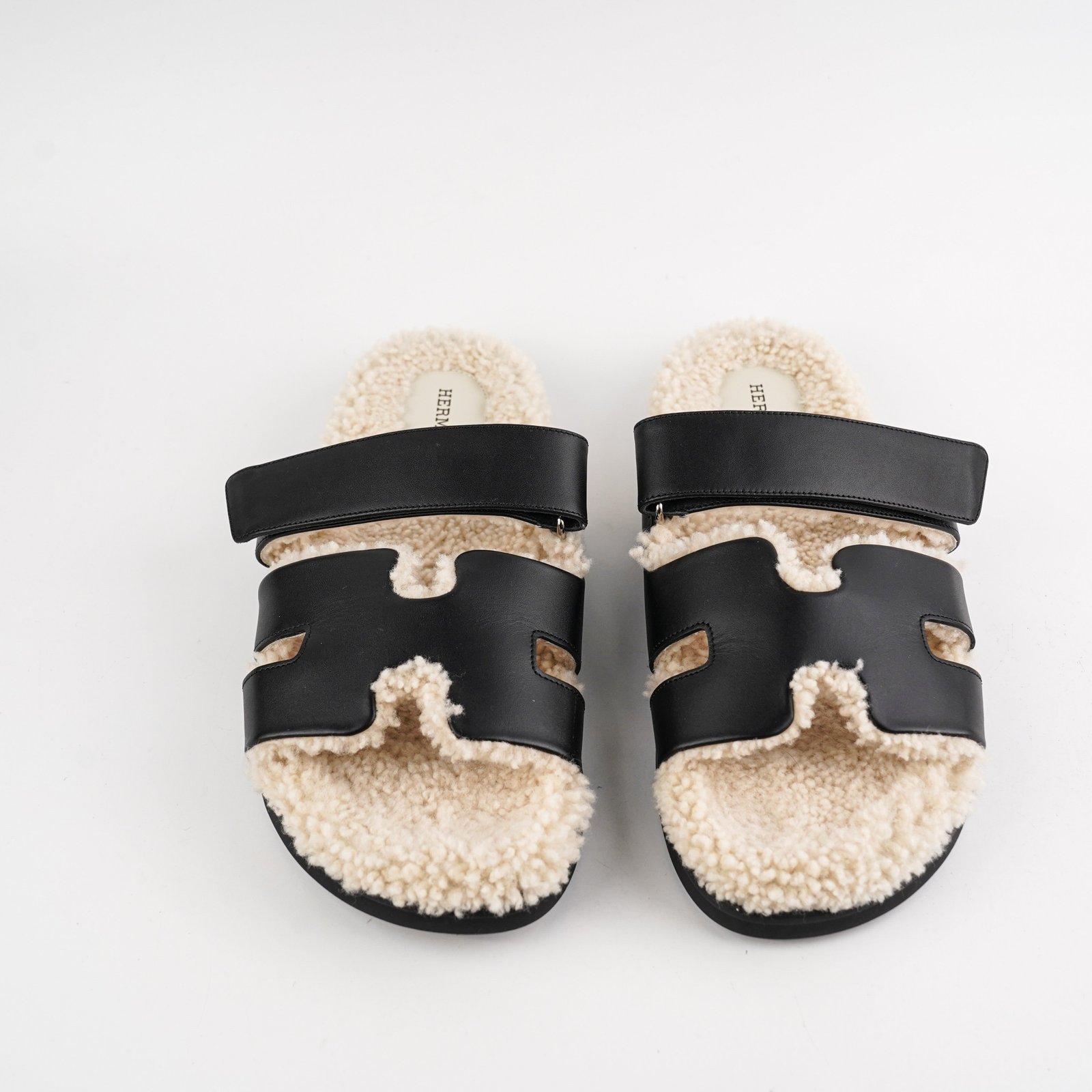 18925 Hermes Chypre Mens Shearling Size 43? Black/White