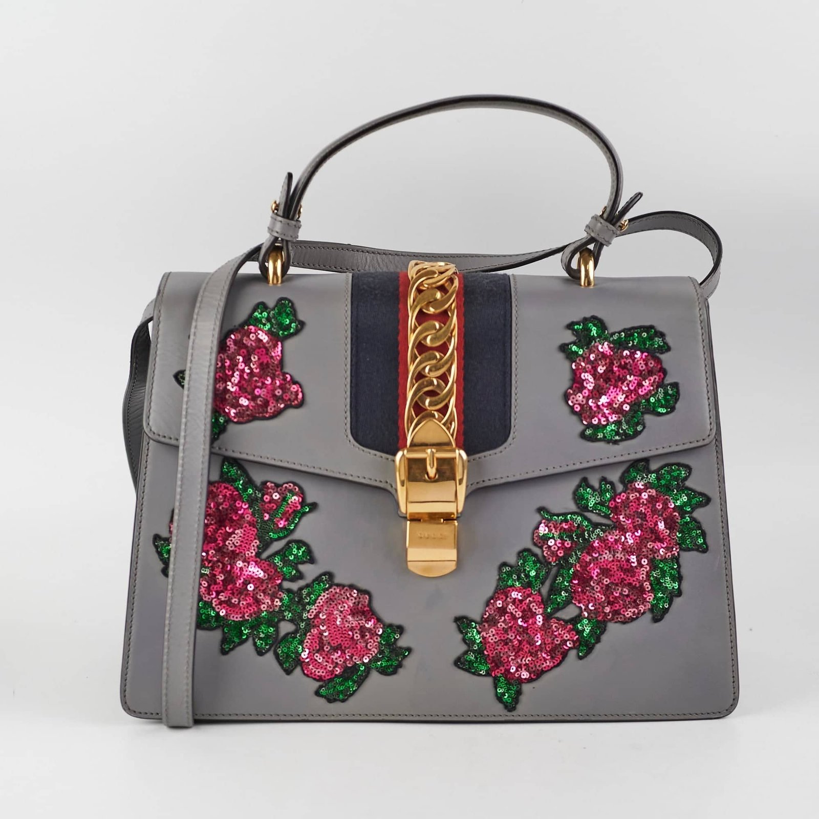 | Name: | 19826 Gucci Sylvie Medium Grey Floral Sequin |