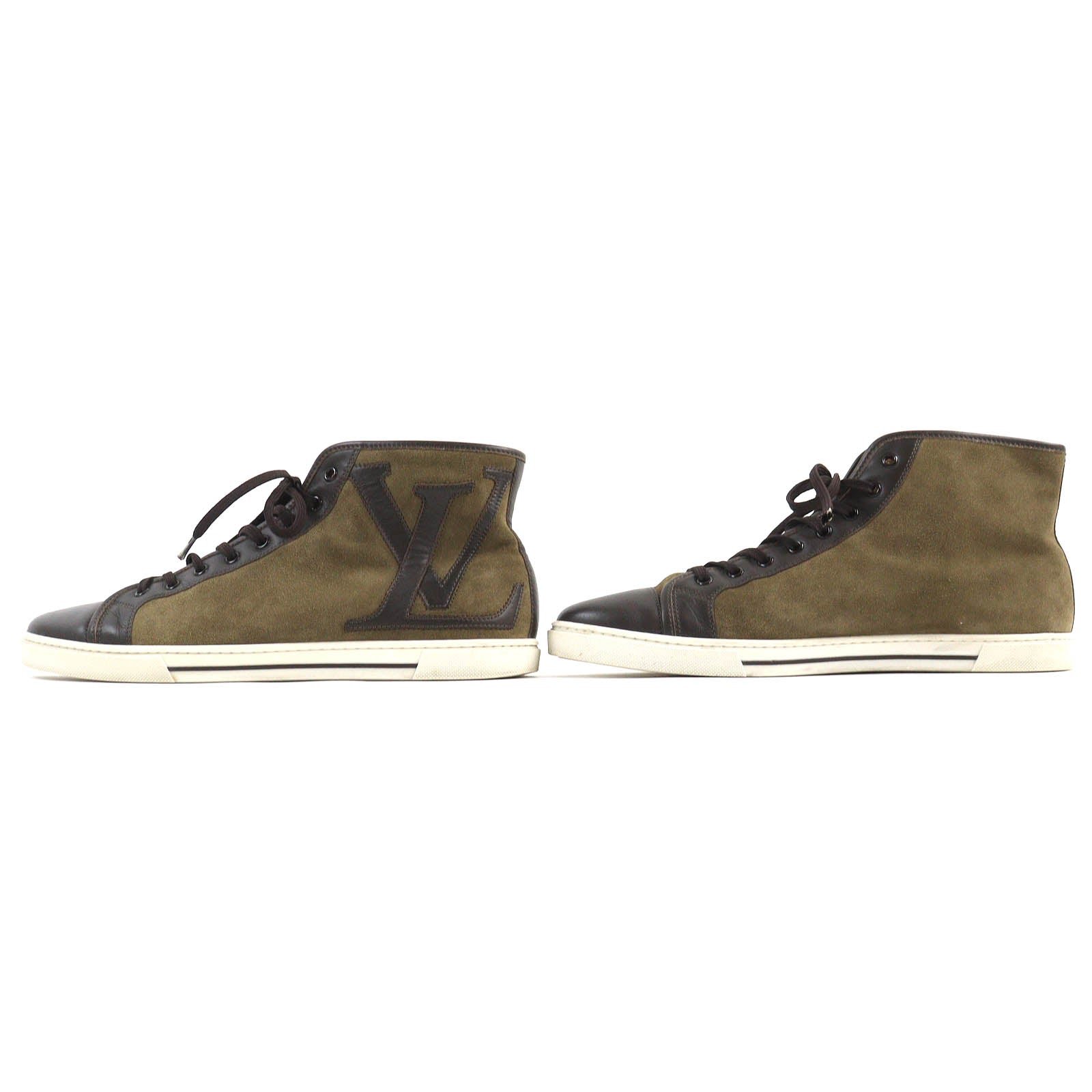 LOUIS VUITTON High cut sneakers Suede leather Khaki Dark Brown 7.5 | AlmaBagz