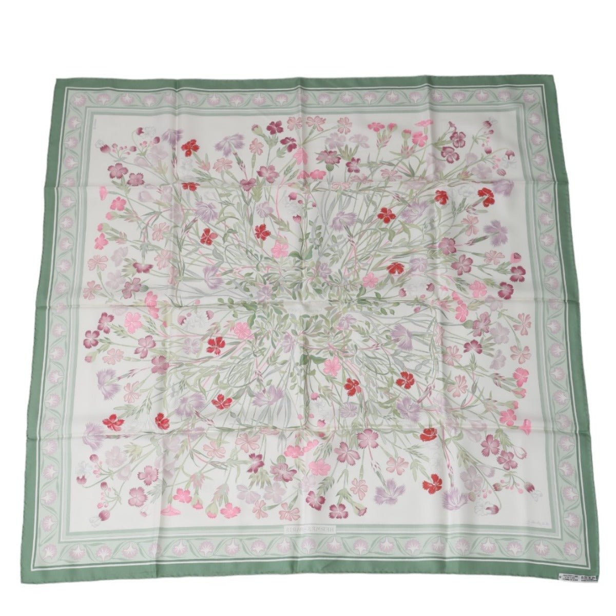 HERMES scarf silk green scarf flour wild carnations and dianthus Women Used | AlmaBagz