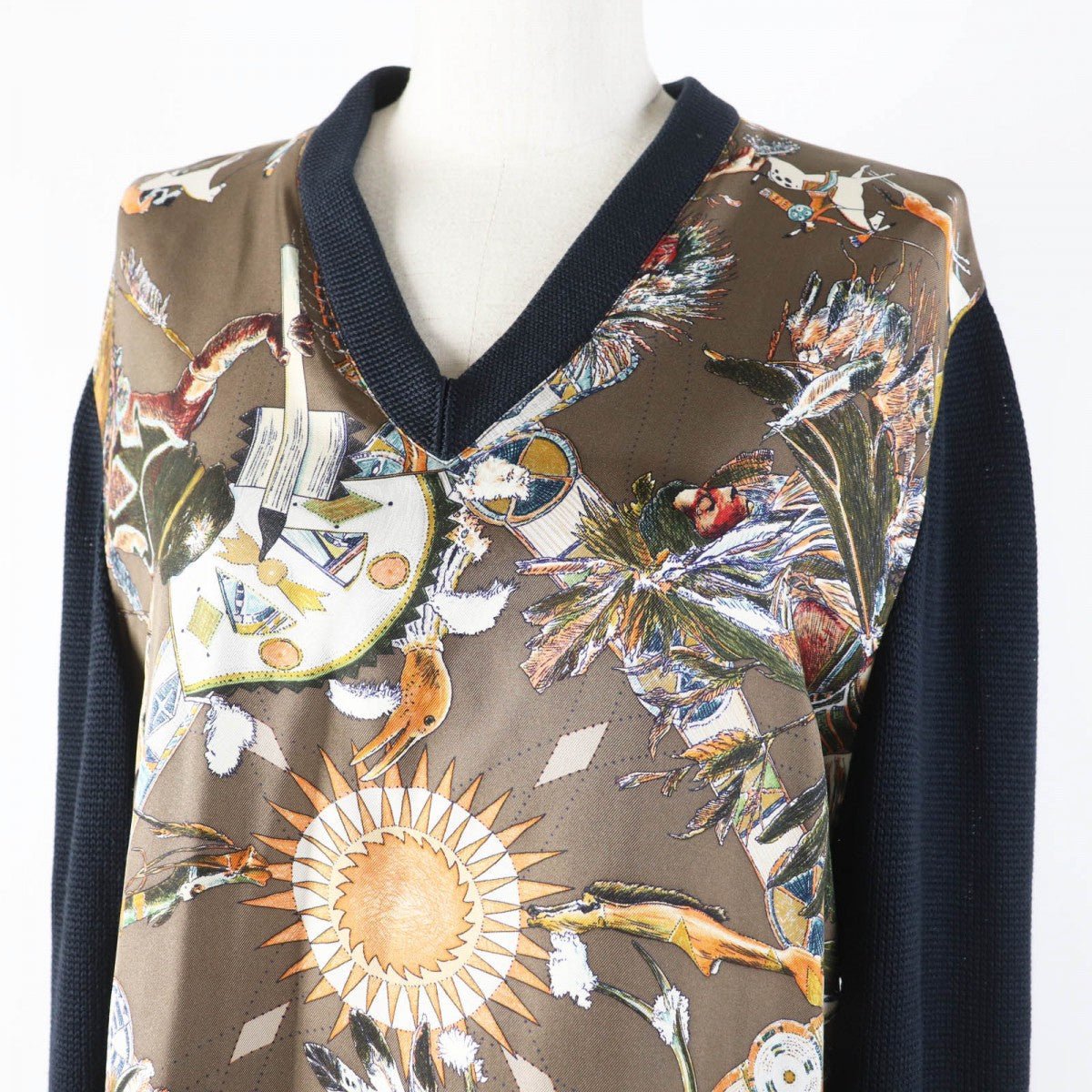 HERMES knit silk Black Brown Multi Margiela period LES DANSES DES INDIENS Indian Dance XL | AlmaBagz