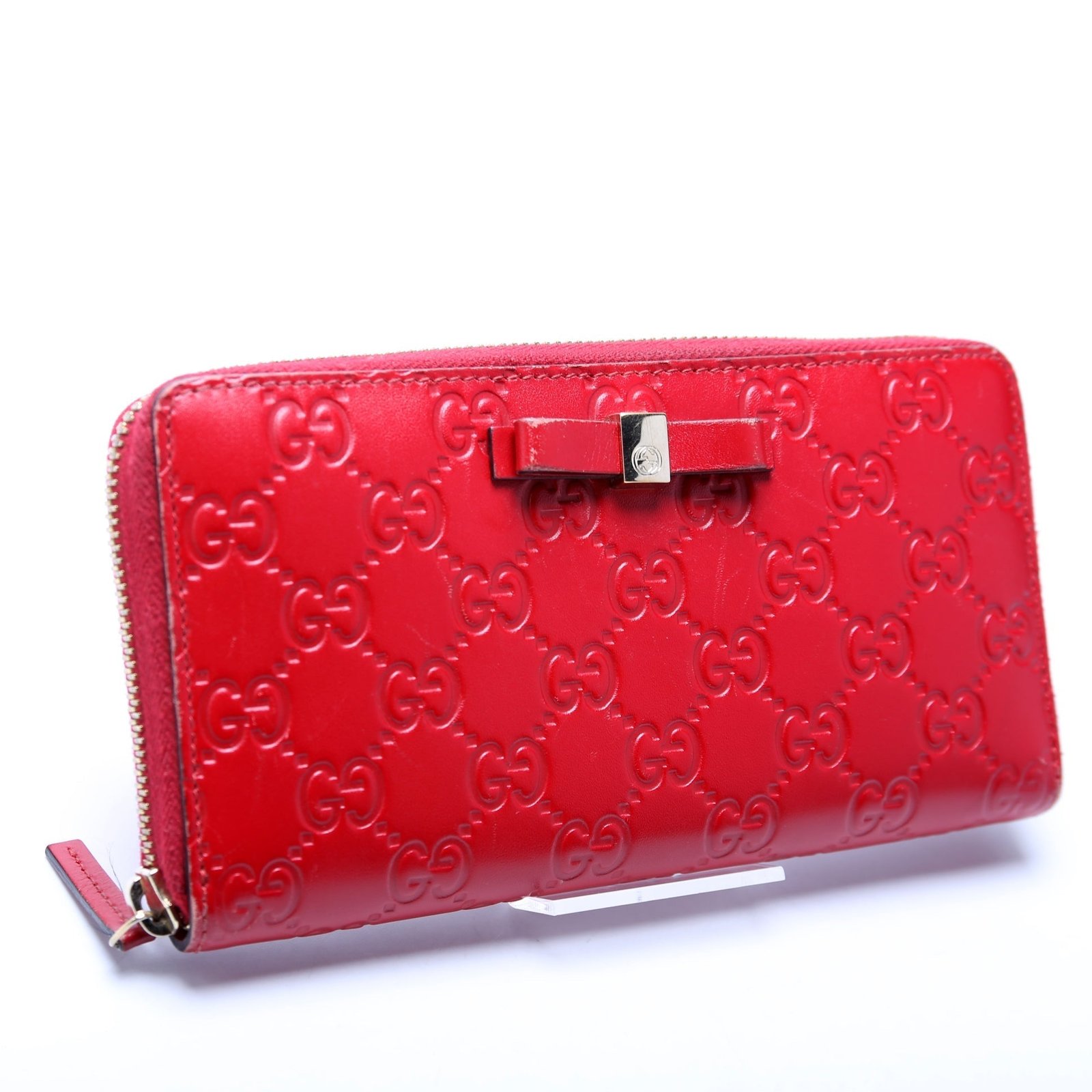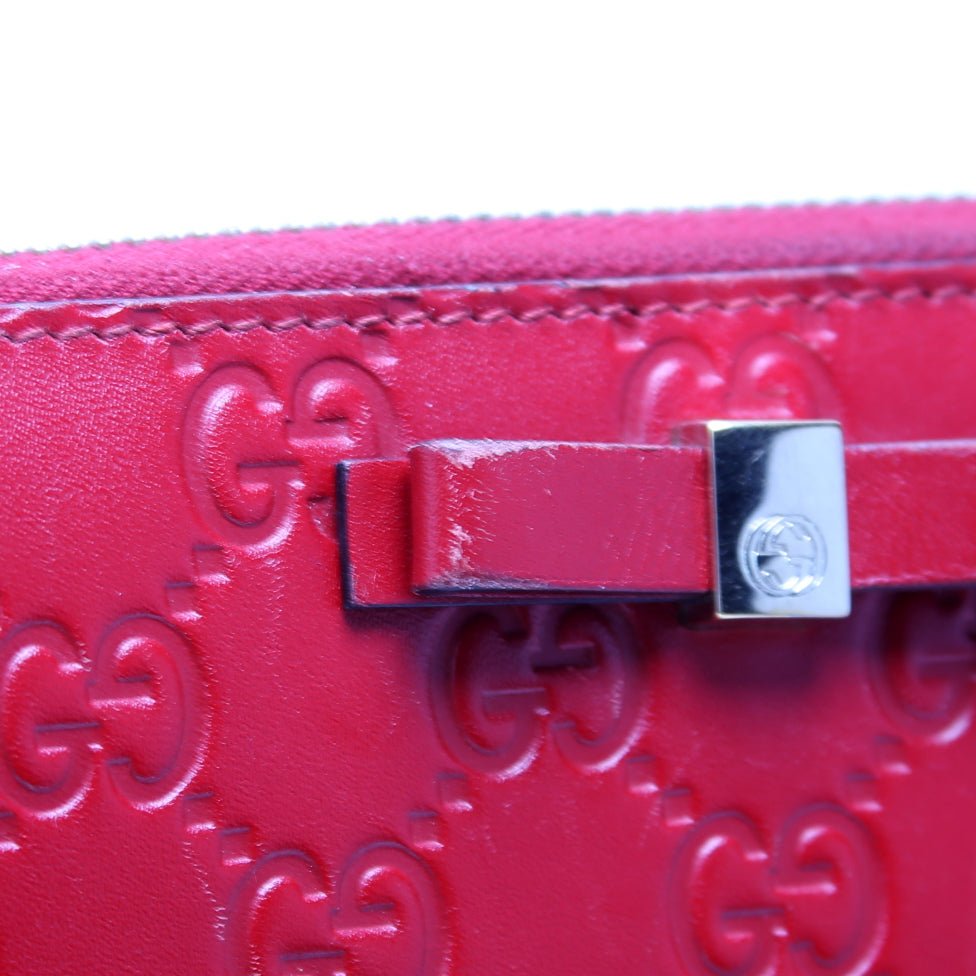 This Gucci Bow Zip Around Wallet Guccissima is The exterior is in the classic Gucci Guccissima leather.