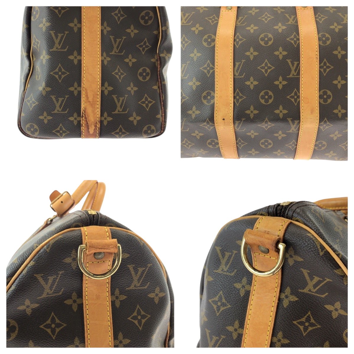LOUIS VUITTON Shoulder Bag M41428 PVC Brown Gold Metal Shoulder Bag Boston Duffel bag 2way Monogram Keepall 45 bandouliere Women Used | AlmaBagz