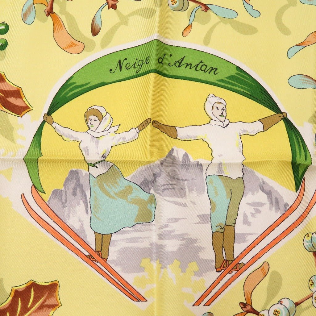 HERMES scarf silk yellow Carre90 Neige d’Antan Last year’s snow Christmas | AlmaBagz