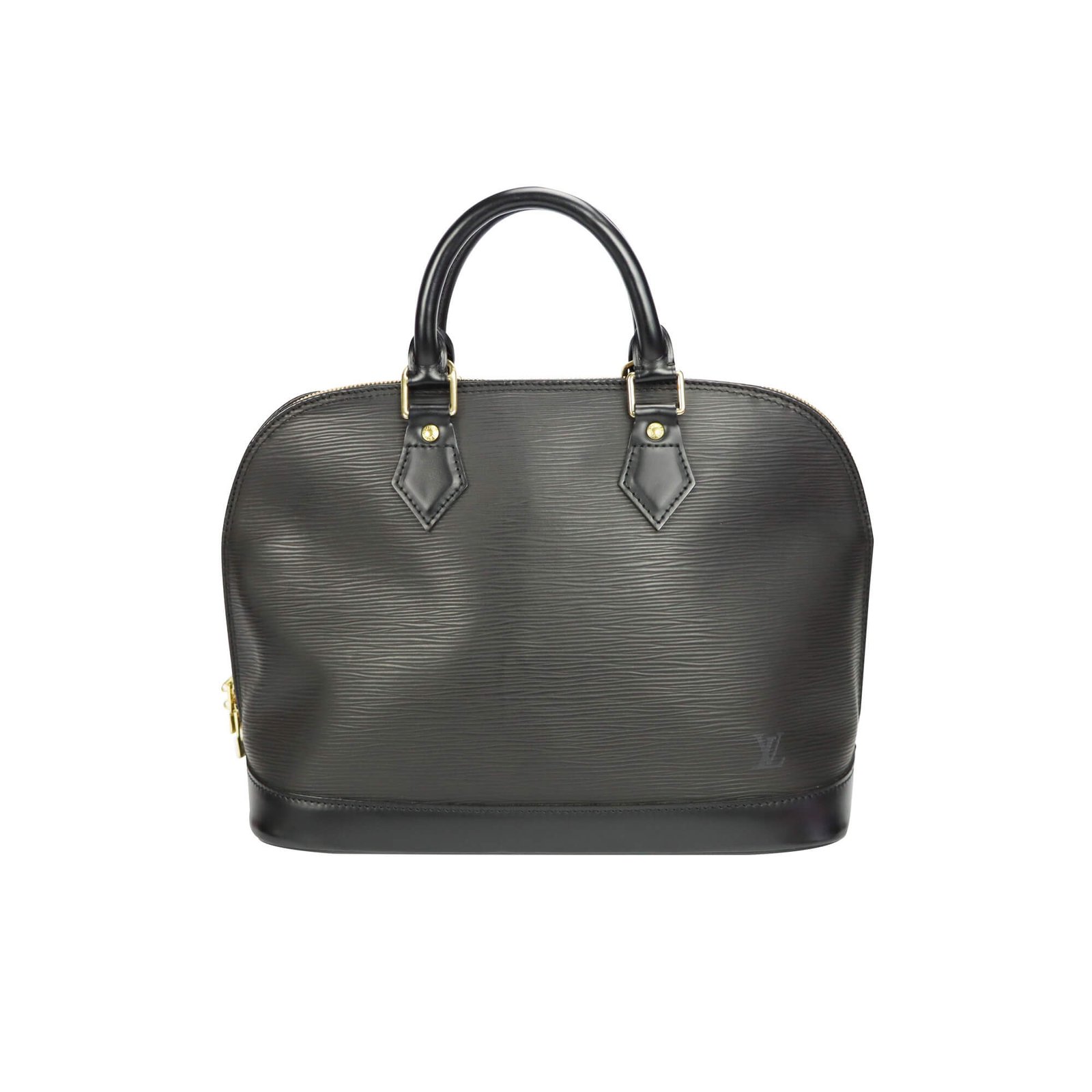 Die Louis Vuitton Alma wurde erstmals im Jahre 1934 lanciert und gehört damit zu den Klassikern des Modehauses. Dieses elegante Modell aus schwarzem Epi Leder besitzt handvernähte, gerollte Henkel und goldfarbene Beschläge. Die Tasche kann entweder in der Hand oder am Ellbogen getragen werden.