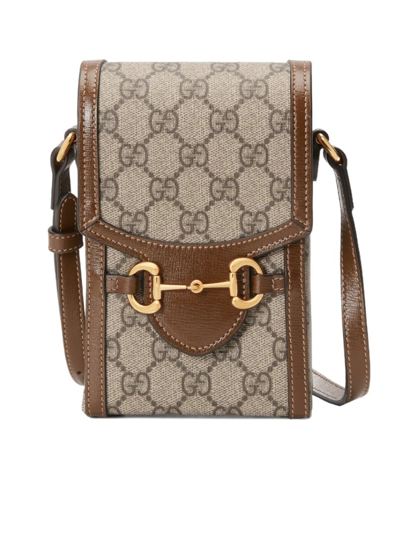 Horsebit 1955 mini handbag with gold tone accessories, horsebit detail, button fastened interior flap pocket. (This item is packaged in a dust bag or box)