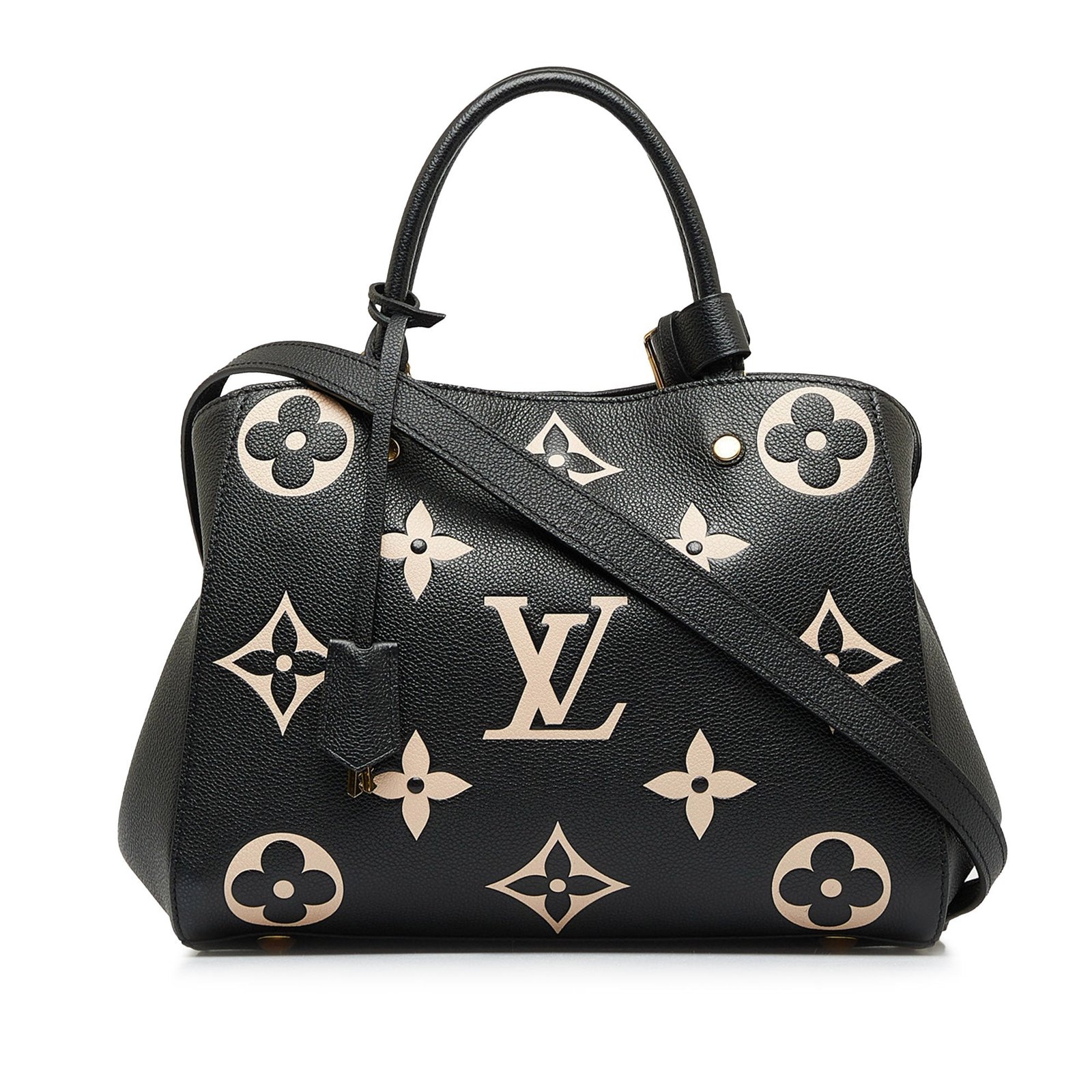 The Louis Vuitton Montaigne handbag was named after a magnificent shopping street in Paris. Slightly sloping sides and a narrower top lend the Bag a confident elegance. The interior is lined with striped textile lining and is extremely versatile. It has a central zipped compartment, a larger open compartment and 2 smaller open compartments. The Bag has two handles on the top and a detachable shoulder strap, making it suitable for different carrying options and perfect for everyday use.