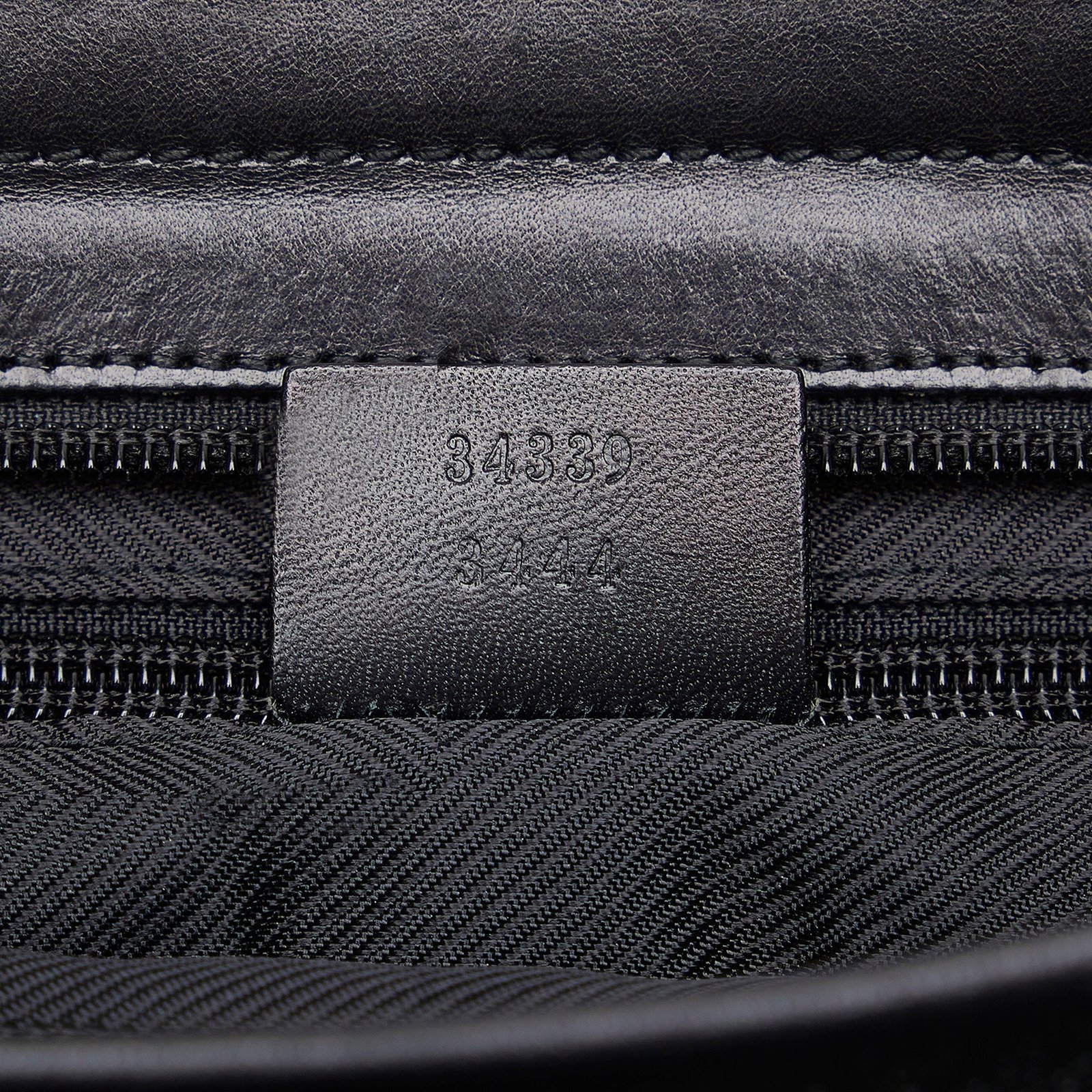 Product Details: Gray Gucci GG Canvas Tote Bag. This tote bag features a canvas body with leather trim, flat shoulder straps, a top zip closure, an exterior zip pocket, and an interior zip pocket. 9.8′ L x 14.2′ W x 5.1′ D, 9.8′ drop. Serial number 34339 3444.