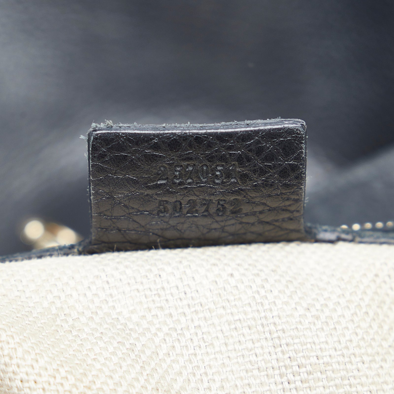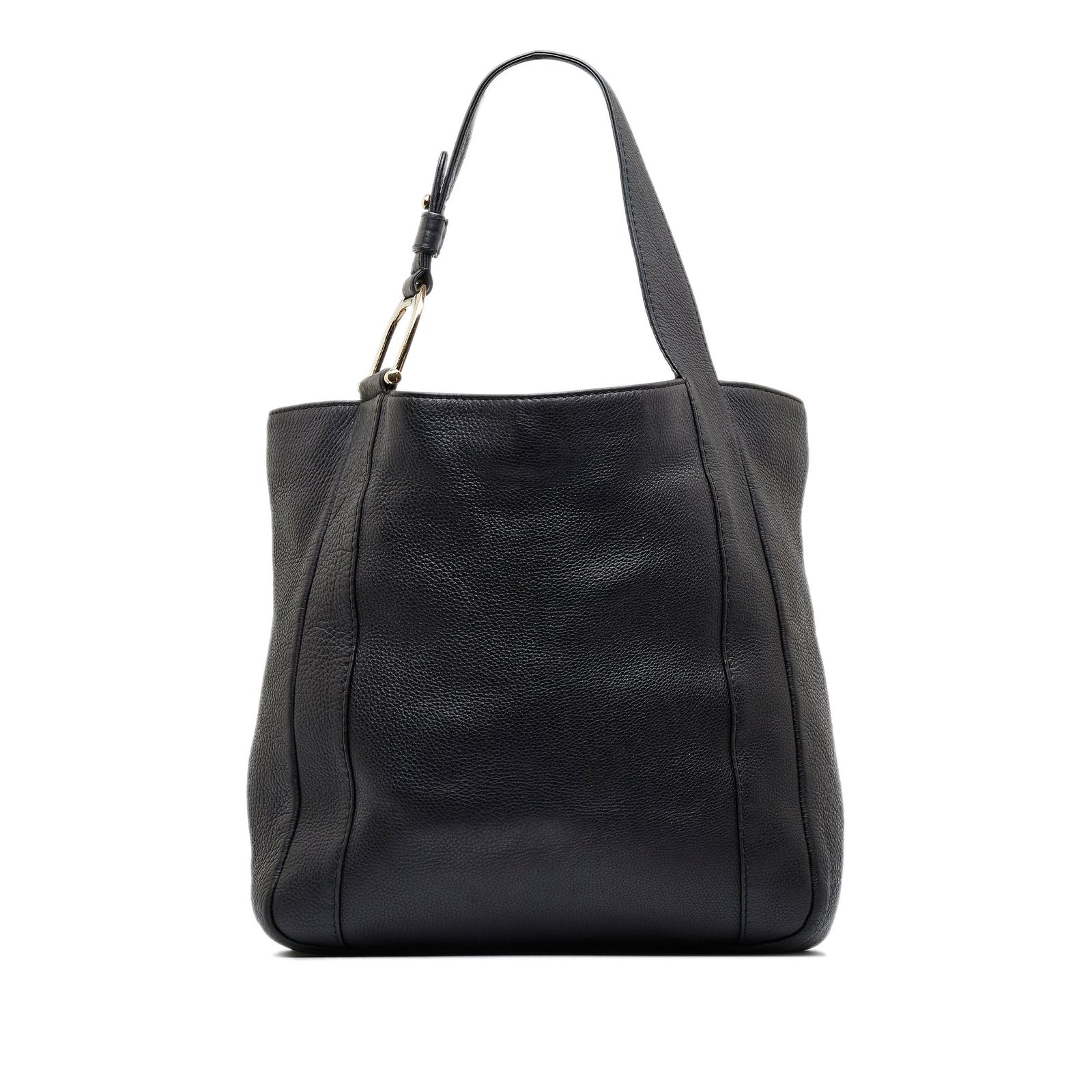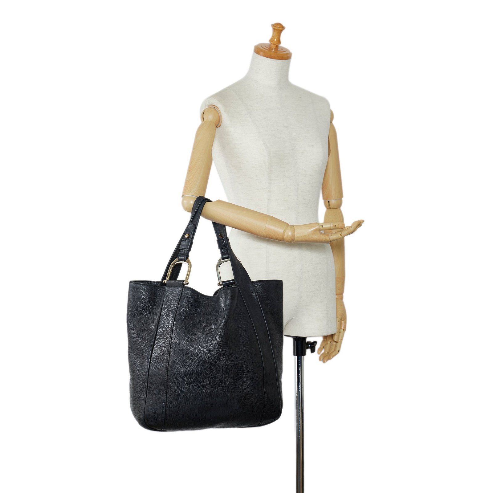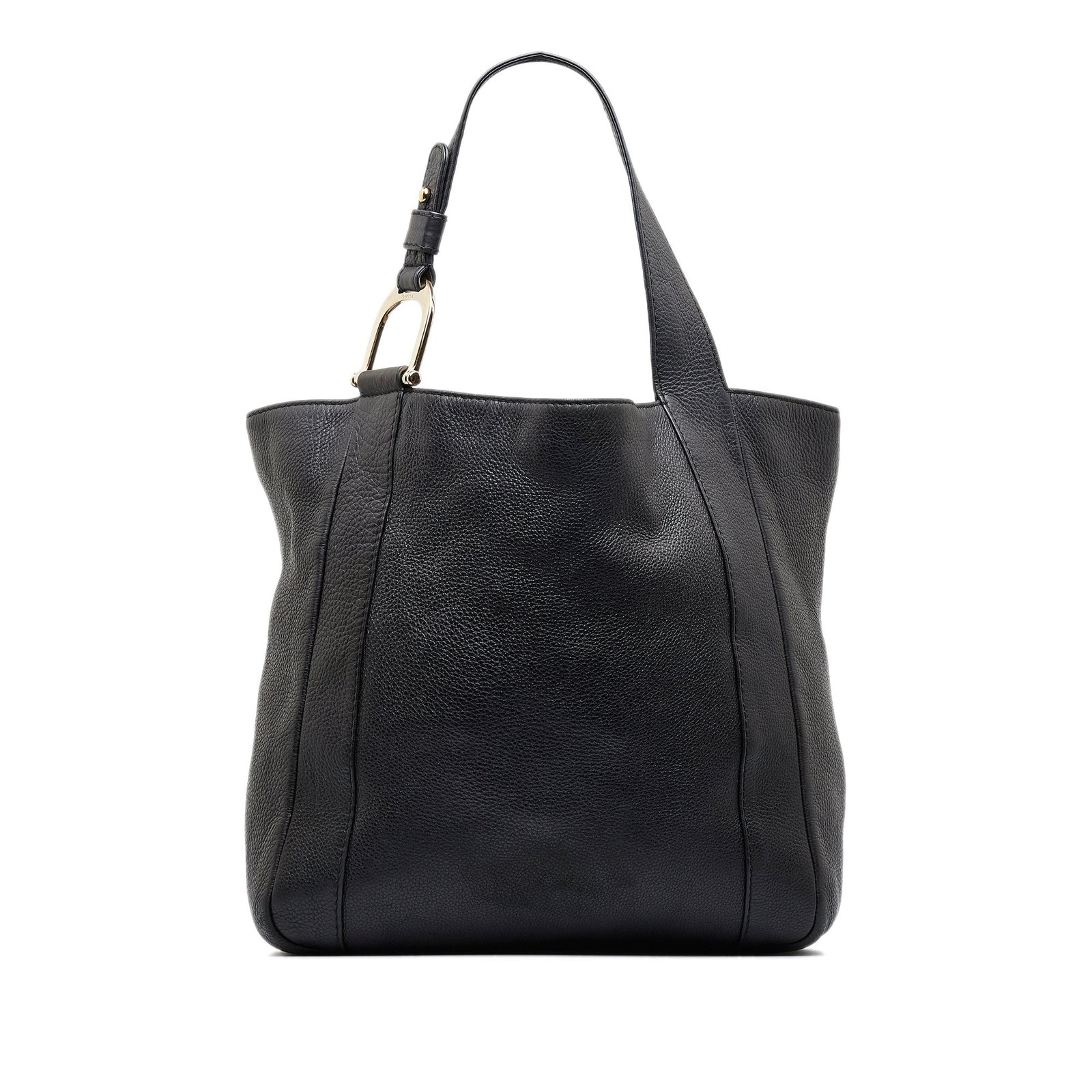 Product Details: Black Gucci Greenwich Tote Bag. This tote bag features a leather body, flat leather straps, an open top with claw closure, and interior zip and slip pockets. 13.2′ L x 12.2′ W x 4.3′ D, 9.1′ drop. Serial number 257051.