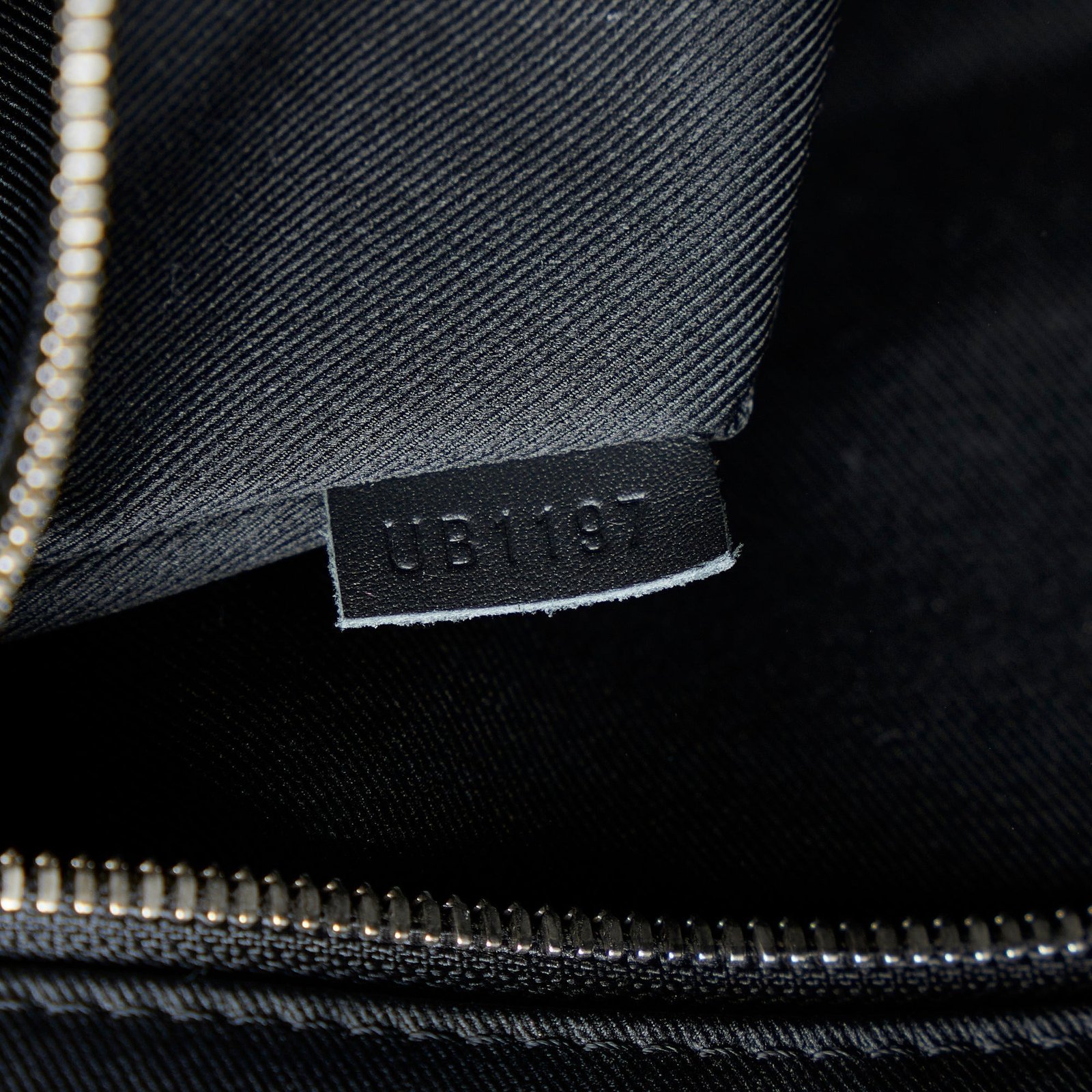 Product Details: Black Louis Vuitton Damier Infini Apollo Tote Satchel. The Apollo Tote features a leather body, flat leather handles, a flat detachable strap, an open top with magnetic button closure, and interior zip and slip pockets. 15.4′ L x 12.6′ W x 4.1′ D, 5.3′ drop. Serial number UB1197.