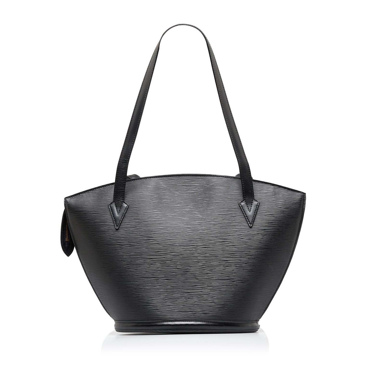 Product Details: Black Louis Vuitton Epi Saint Jacques GM Long Strap Tote Bag. The Saint Jacques GM features an epi leather body, flat straps, a top zip closure, and an interior zip pocket. 10.2′ L x 13.4′ W x 4.7′ D, 8.3′ drop. Serial number AS0929.