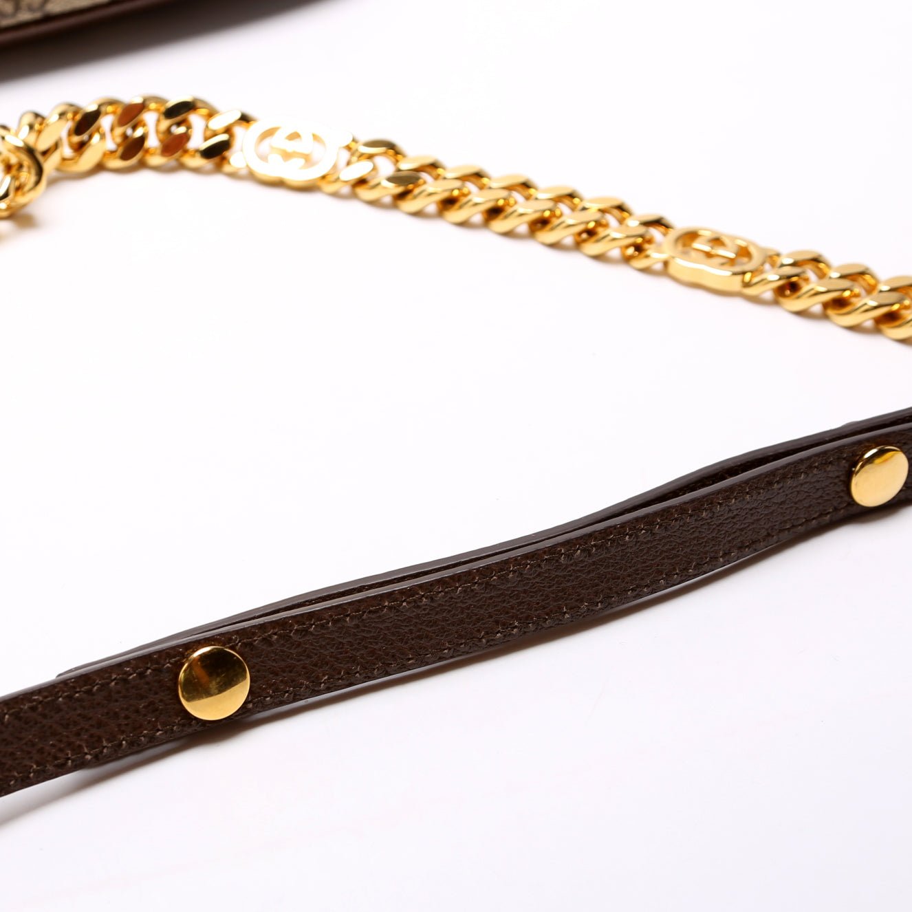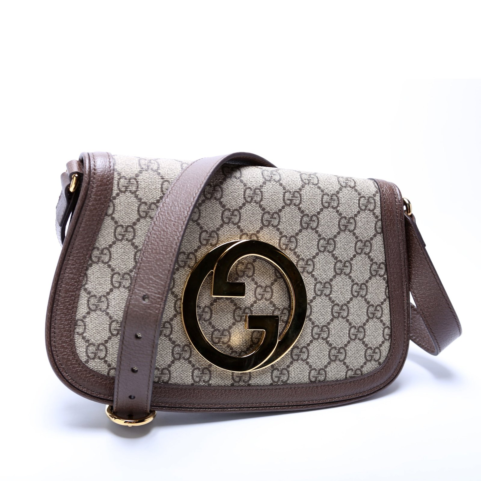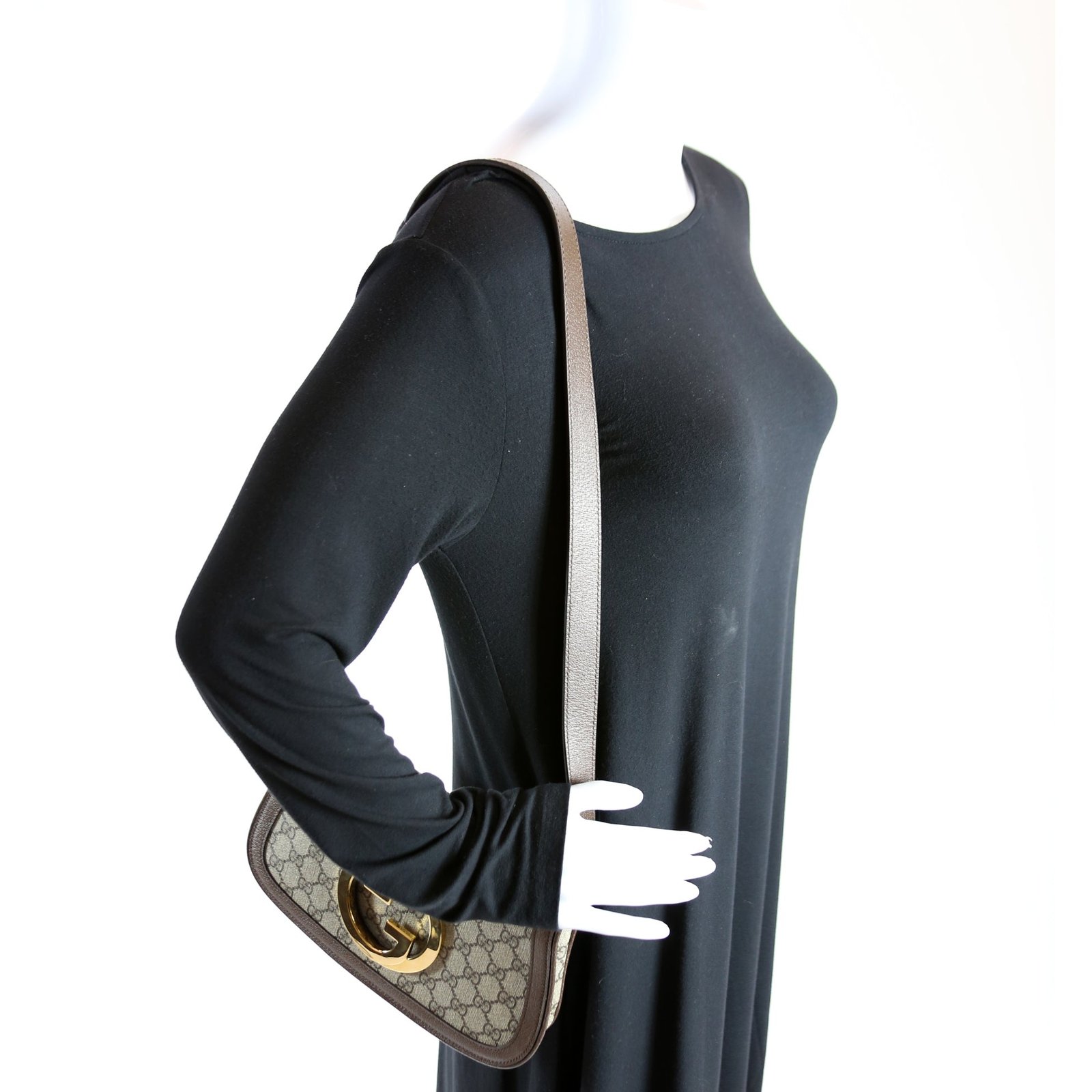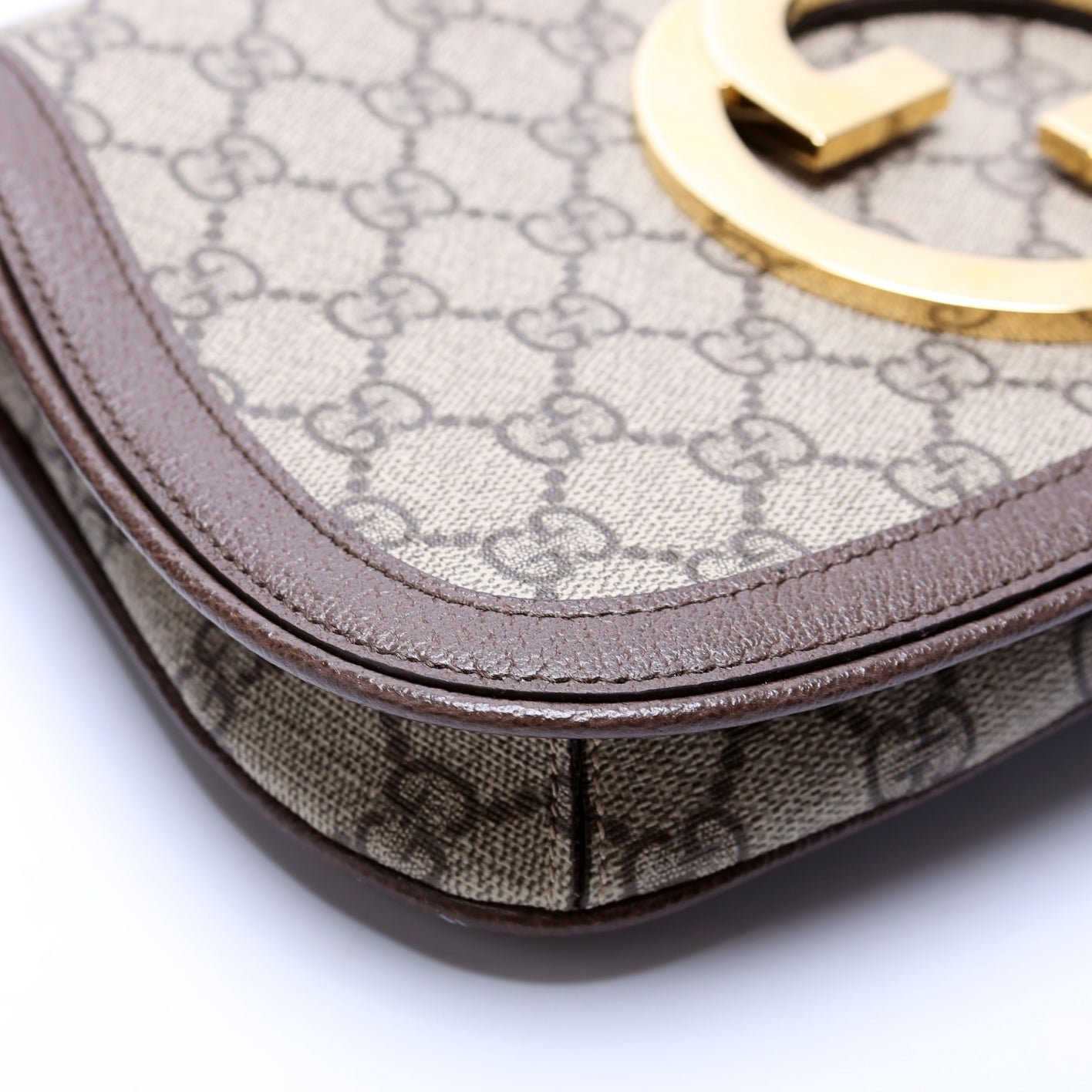 This  Gucci GG Blondie Shoulder Bag . The exterior is in the classic Gucci GG supreme coated canvas.