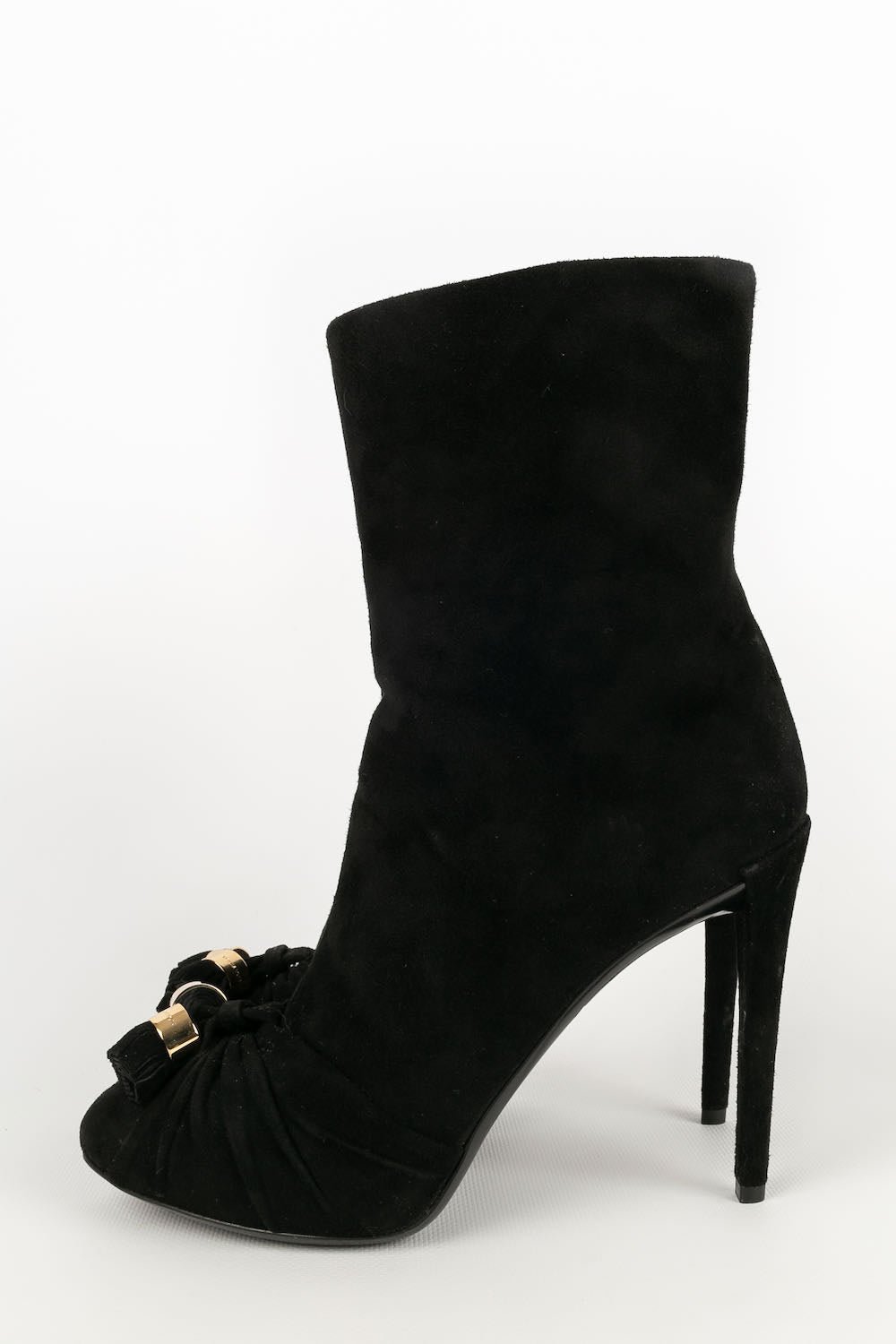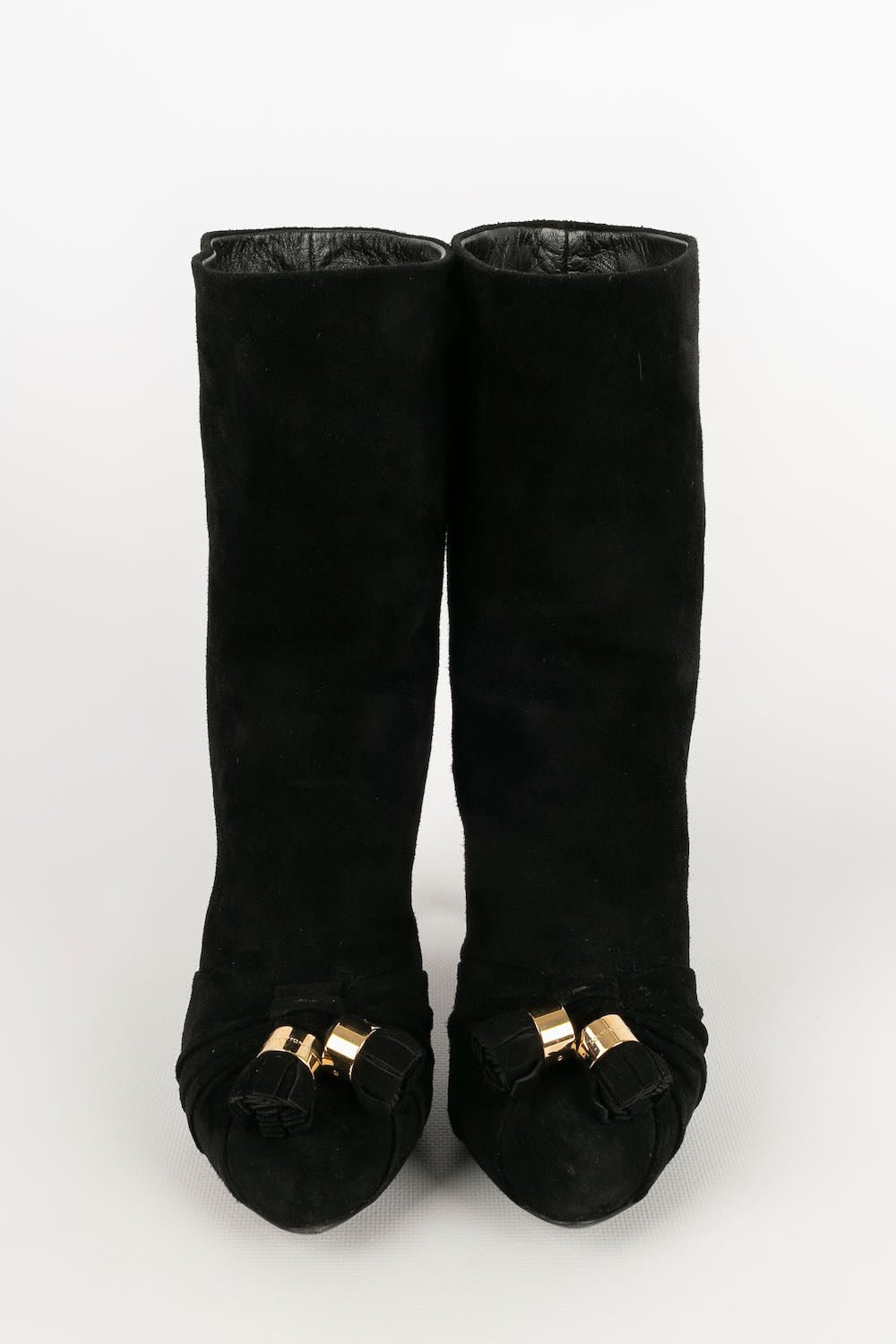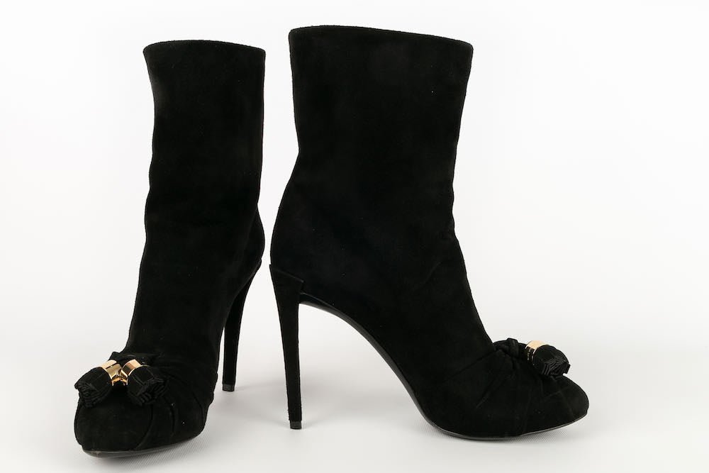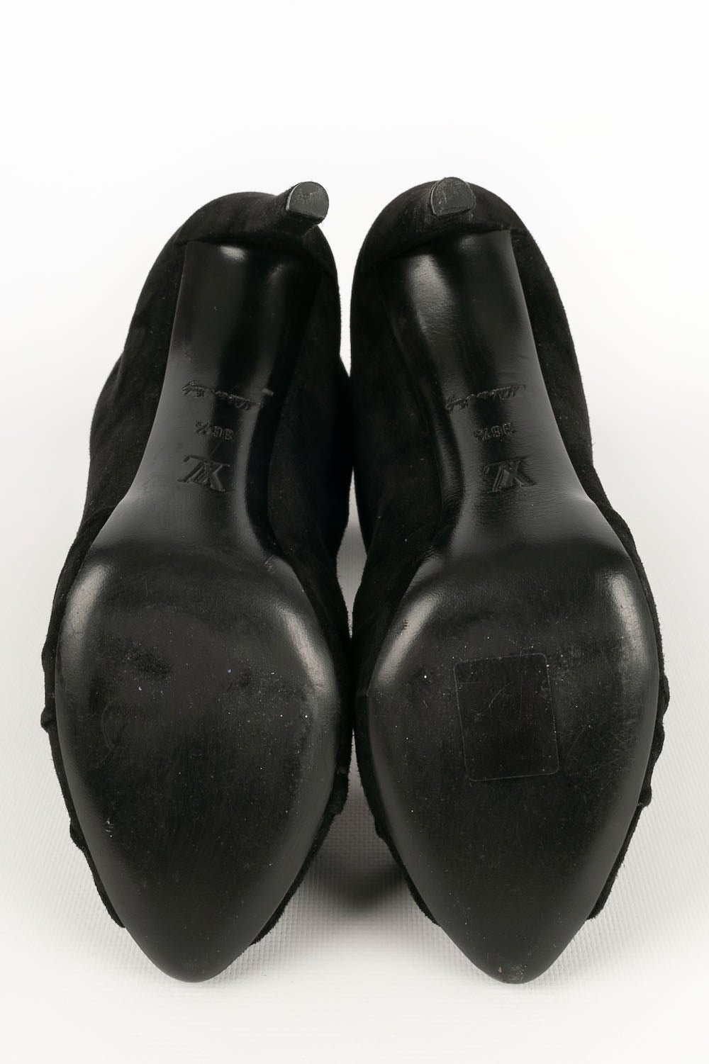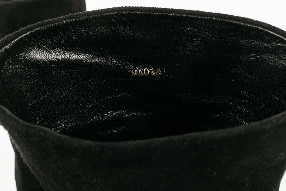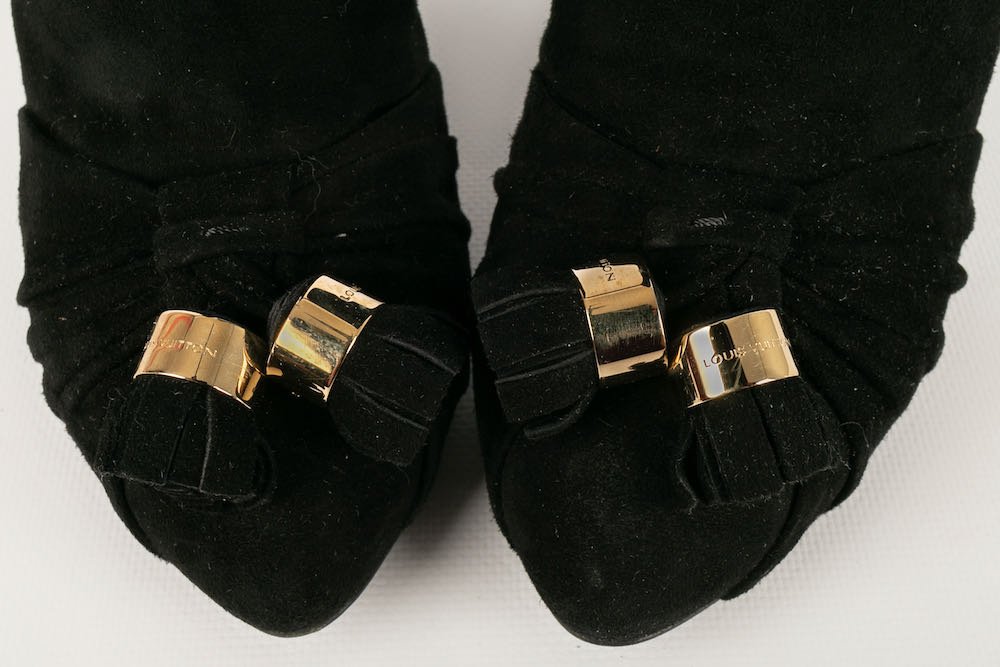 LOUIS VUITTON -(Made in Italy) Bottes à talons en daim noir. Pointure 36,5FR.