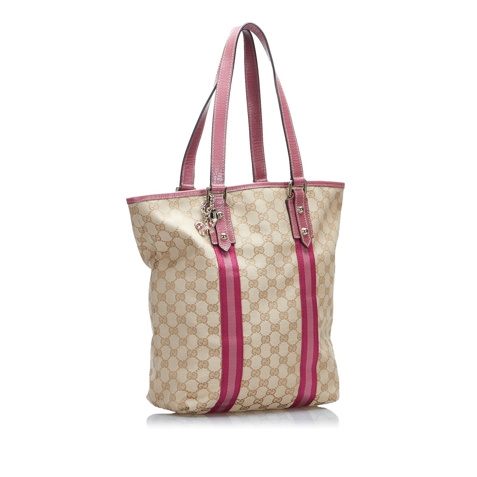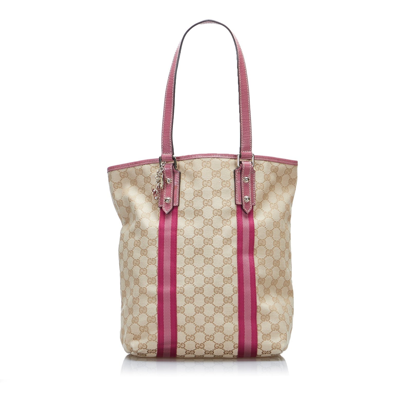 Product Details: Brown Gucci GG Canvas Jolicoeur Tote. The Jolicoeur Tote Bag features a canvas body, flat leather straps, an open top, and interior zip and slip pockets. 11.8′ L x 9.4′ W x 4.5′ D, 8.7′ drop. Serial number 162899.