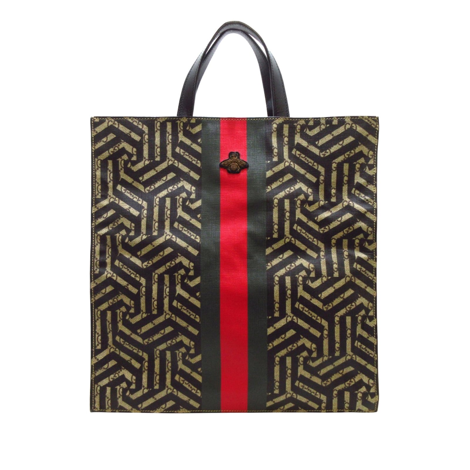 Brown Gucci GG Supreme Caleido Web Tote Satchel | AlmaBagz