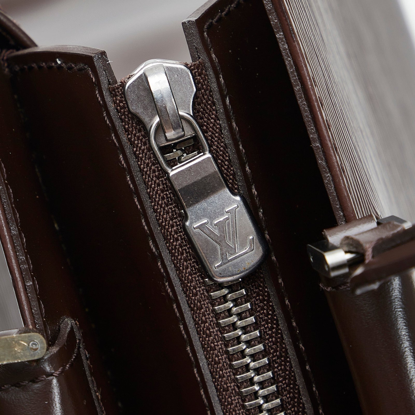 Product Details: Brown Louis Vuitton Epi Figari MM Tote Bag. The Figari MM features an epi leather body, flat handles a top zip closure, and interior zip and slip pockets. 11.4′ L x 11′ W x 4.3′ D, 5.5′ drop. Serial number FL0072.