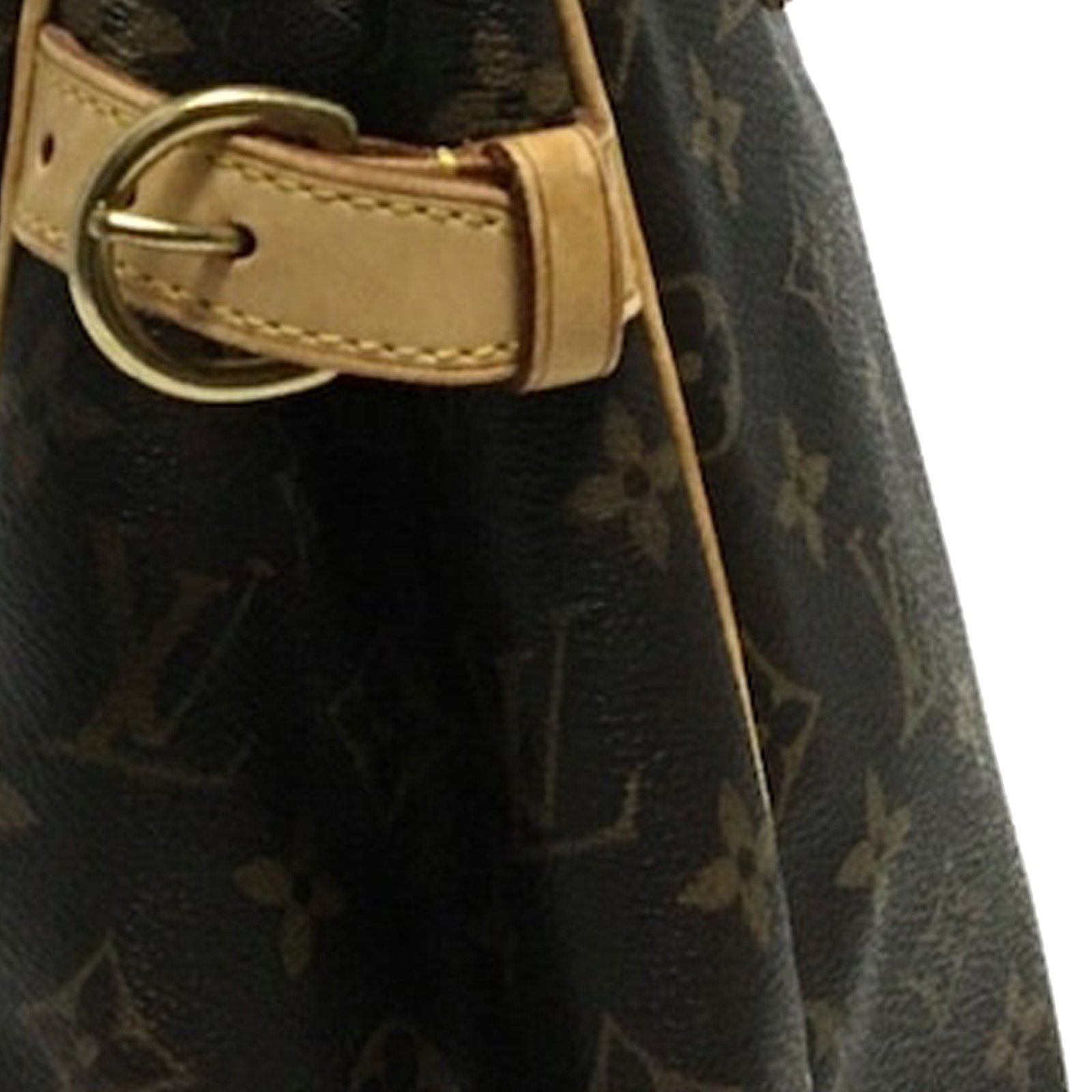 Product Details: Brown Louis Vuitton Monogram Batignolles Vertical Tote Bag. The Batignolles Vertical features a monogram canvas body, flat vachetta leather handles, side belt details, an open top, and interior slip pockets. 10.2′ L x 9.1′ W x 5.5′ D, 5.1′ drop. Serial number SP 1015.