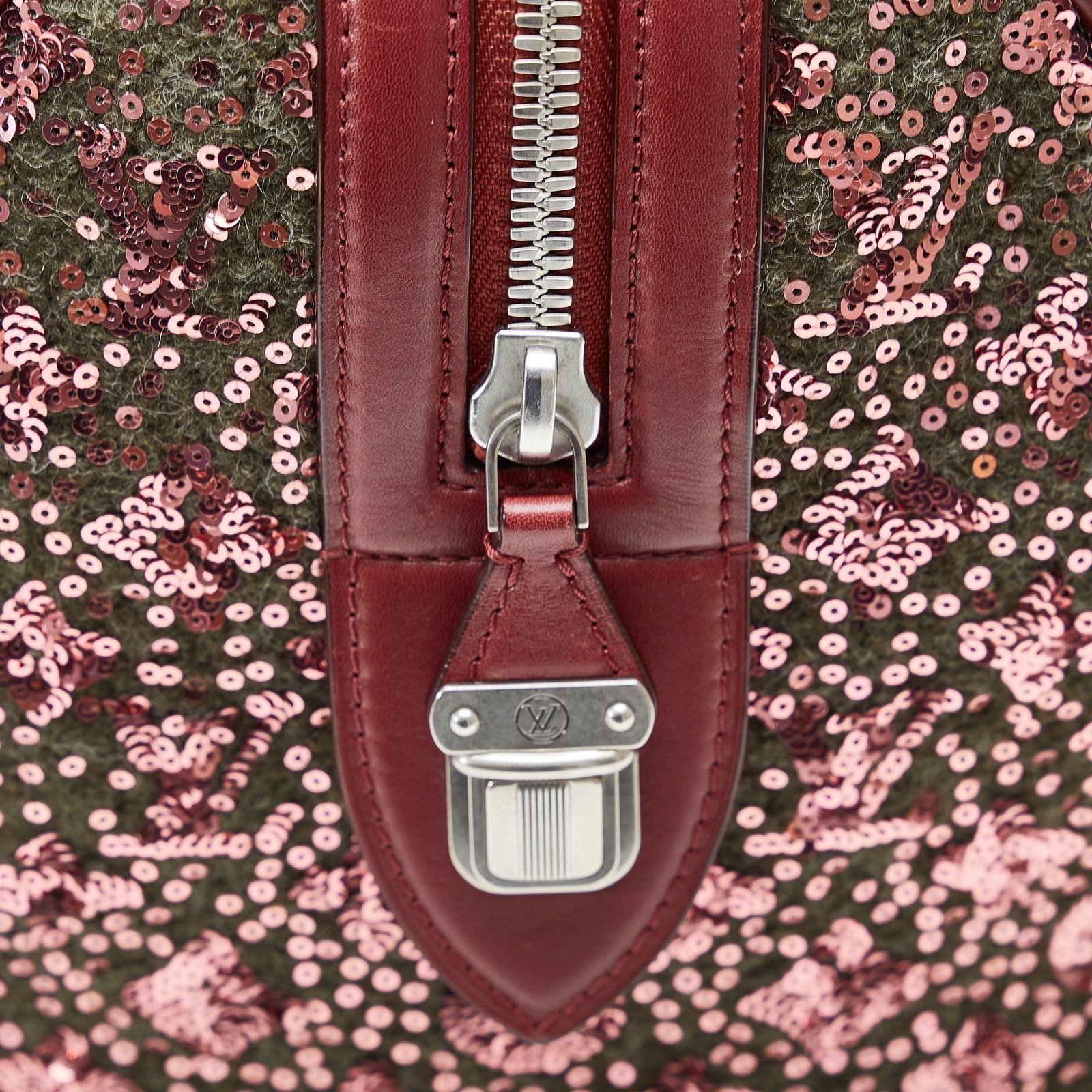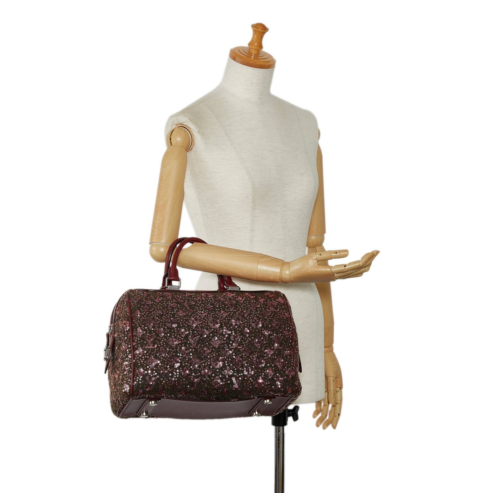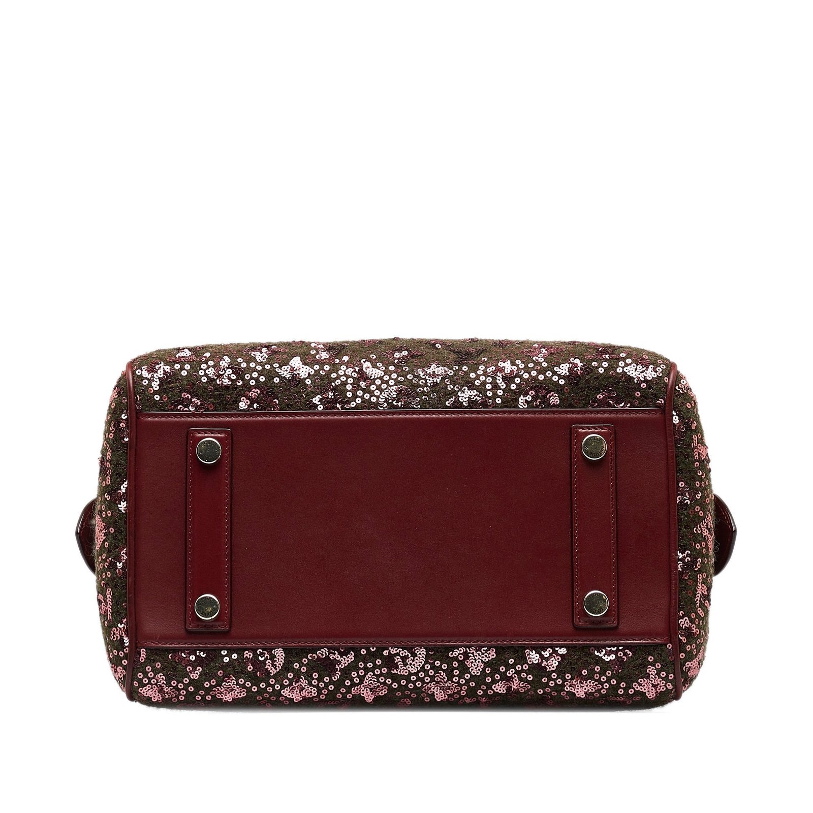 Product Details: Red Louis Vuitton Monogram Sunshine Express Speedy 30 Boston Bag. The Sunshine Express Speedy features an embellished fabric body with leather trim, rolled leather handles, a top zip closure, and an interior slip pocket. 9.1′ L x 12.6′ W x 7.9′ D, 4.5′ drop. Serial number FO3102.