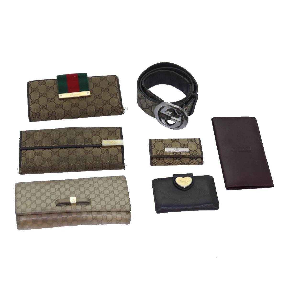 CHRISTIAN DIOR Gucci GG Canvas Belt Wallet 7Set Beige Black Auth ar11909