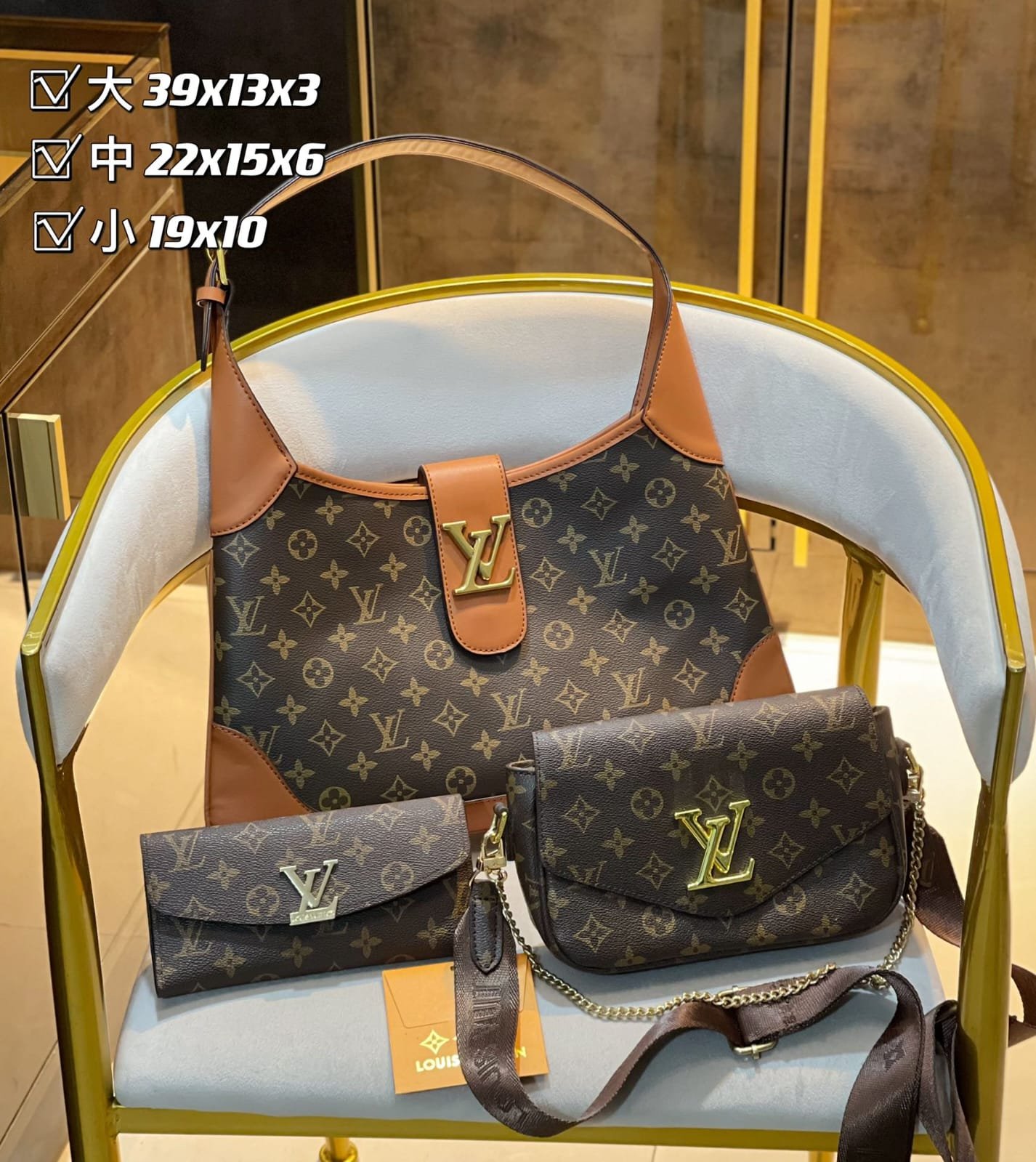 You can also customize your own sets but swapping bags from different sets and different brands Respective of size i.e a big bag can only be swapped with a big bag from any set or and brand , medium for a medium bag and wallet for a wallet of any brand.T&Cs apply