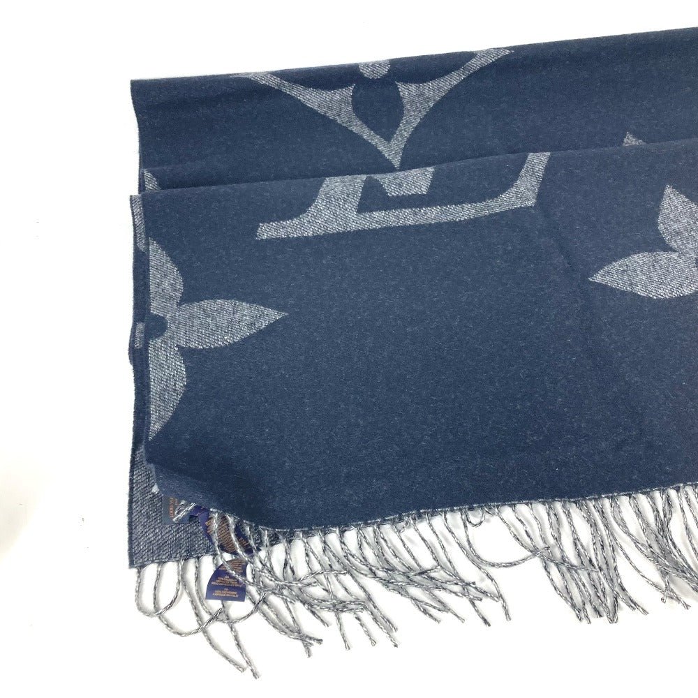 LOUIS VUITTON Scarf M77950 cashmere Navy Monogram Monogram Giant Muffler | AlmaBagz