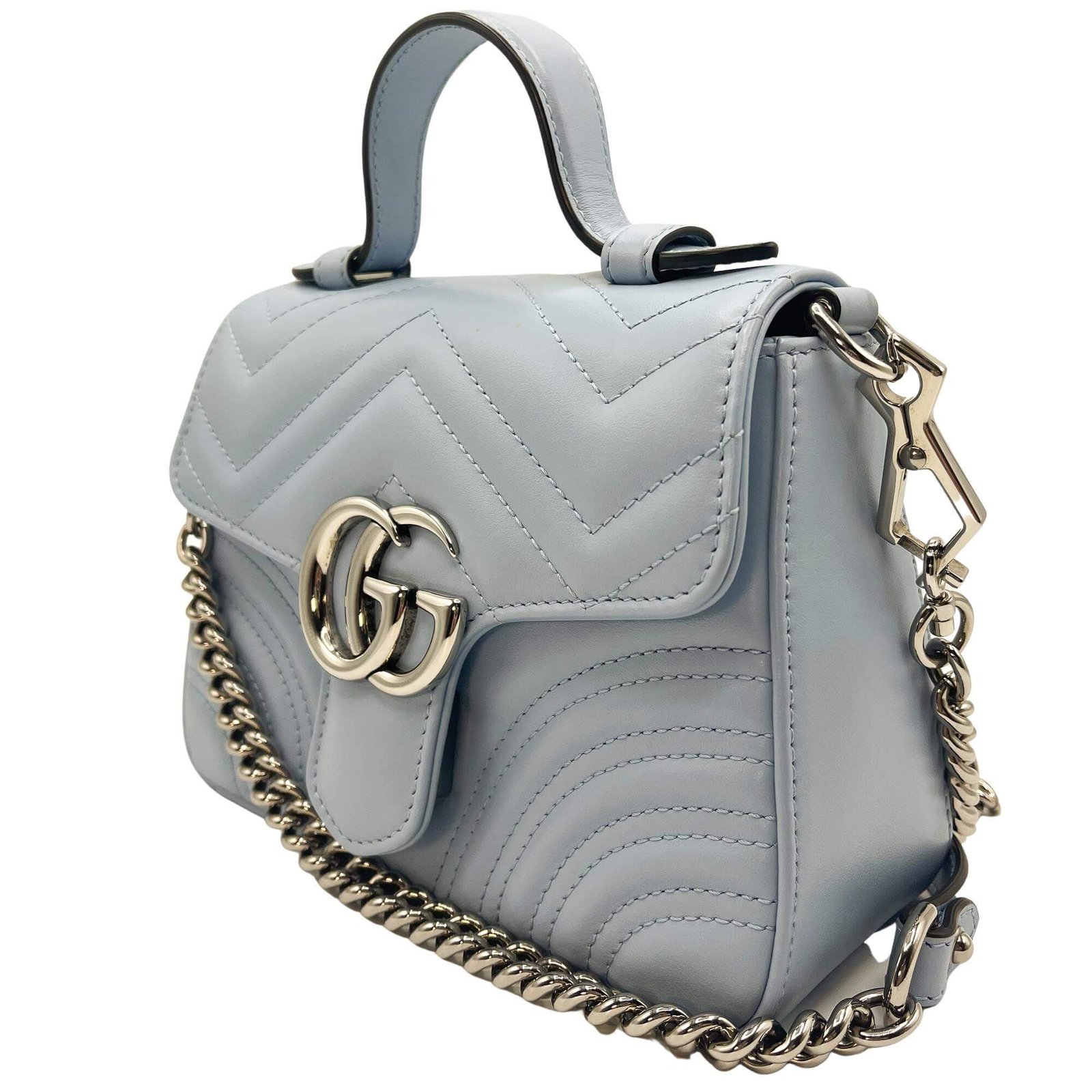 Gucci Mini Marmont cross body bag featuring double G on matelassé leather. In excellent conditions.