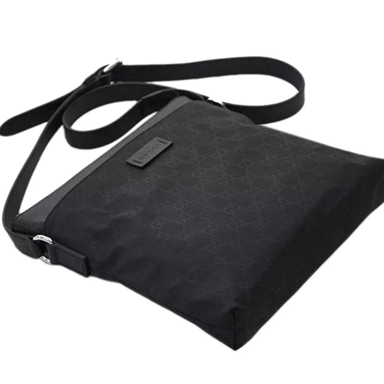 This Gucci crossbody bag combines sleek design with everyday functionality, crafted from durable black nylon featuring the iconic GG monogram pattern subtly woven into the fabric. The bag is accented with a textured leather top trim and matching details for a sophisticated touch. It features a secure zip-top closure to keep your essentials safe and a comfortable, adjustable shoulder strap for versatile carrying options. Compact yet spacious enough for daily necessities, this bag is ideal for anyone seeking style and practicality in one. Perfect for casual outings or professional settings, it adds a touch of luxury to any outfit.