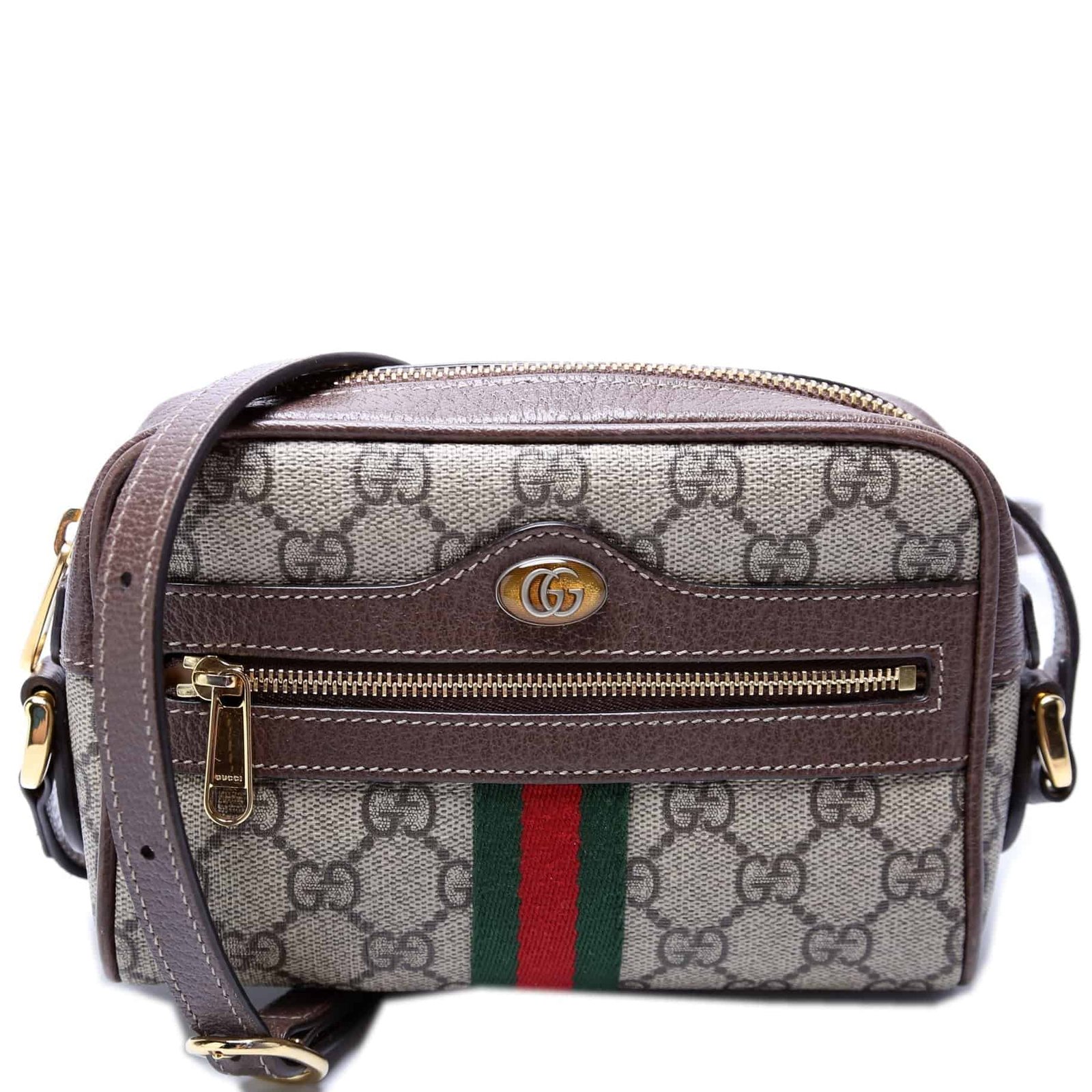 This Gucci Ophidia Mini Belt Bag . The exterior is in the classic GG Supreme coated canvas.