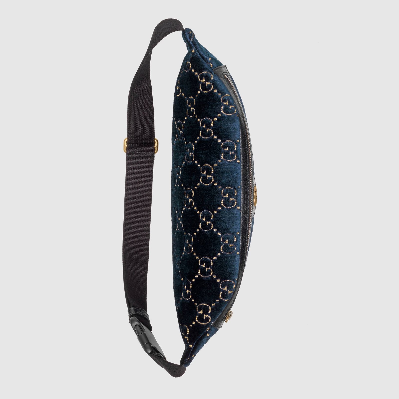 The old school belt bag shape is reworked within the eclectic House narrative, imagined for Pre-Fall 2019 in dark blue GG velvet. In a shape that is reminiscent of the popular ’90s style, the bag is crafted from soft velvet with the embedded GG motif. Codes of the House, including the Web stripe and Double G hardware, further enrich the style.