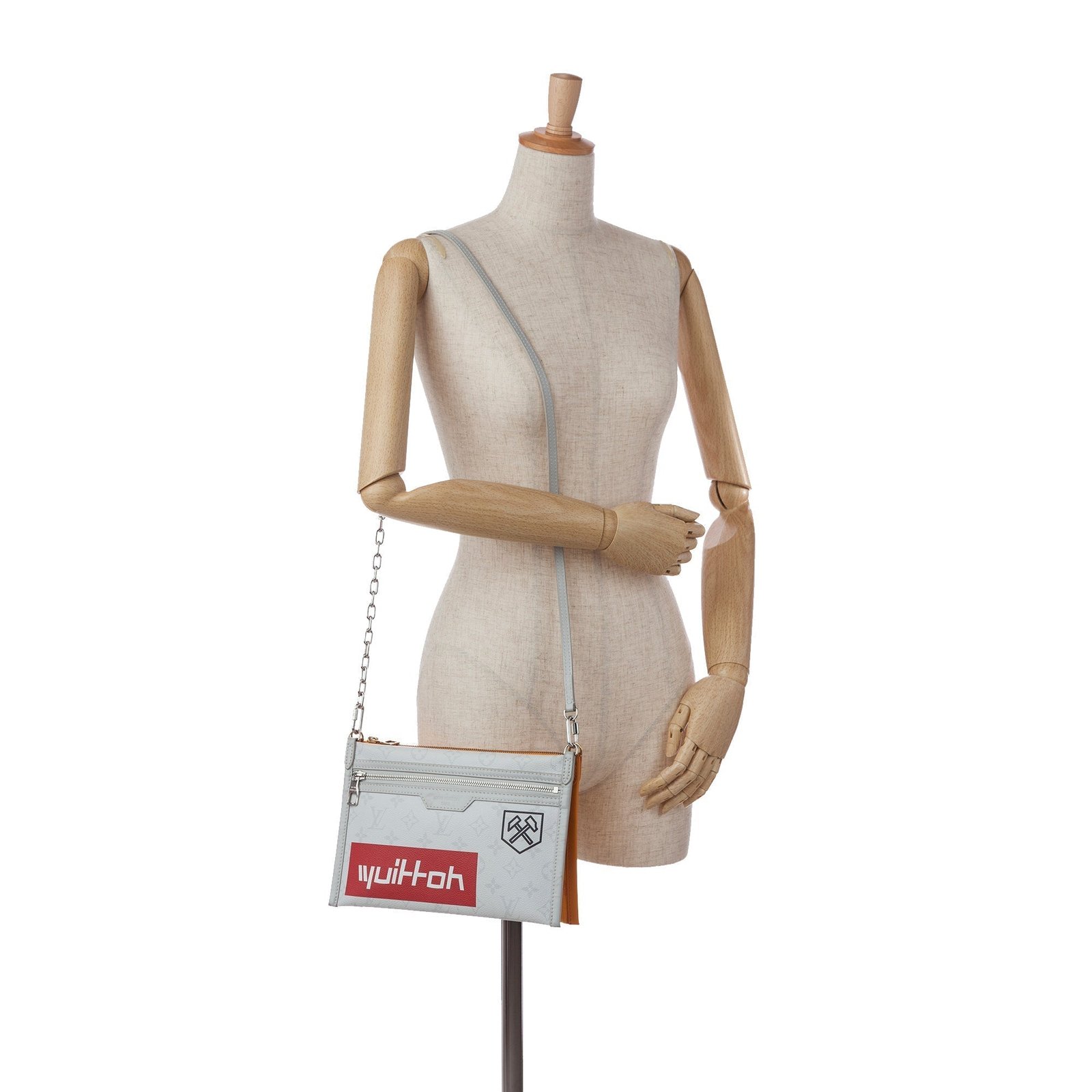 Please note this is a item that may display signs of wear consistent with the condition listed above and shown in photos. Designer Revival s this is an Gray Louis Vuitton Monogram Antartica Double Flat Messenger Crossbody Bag .