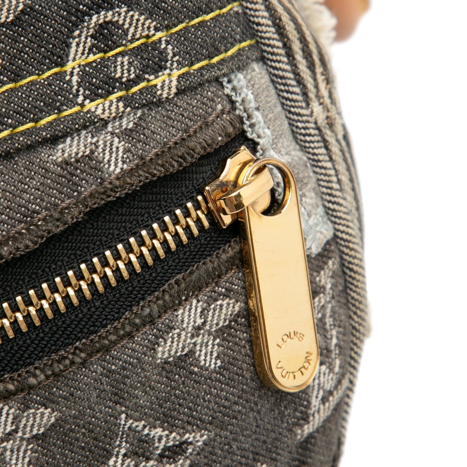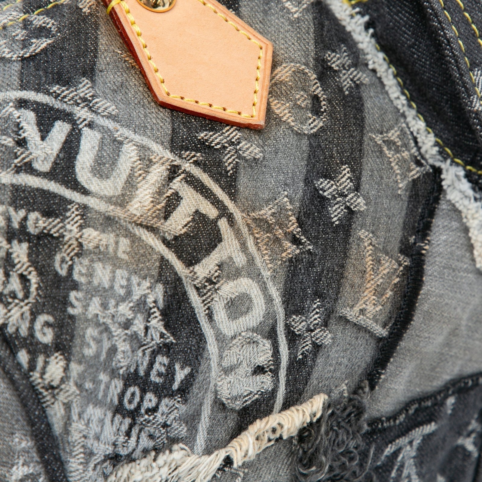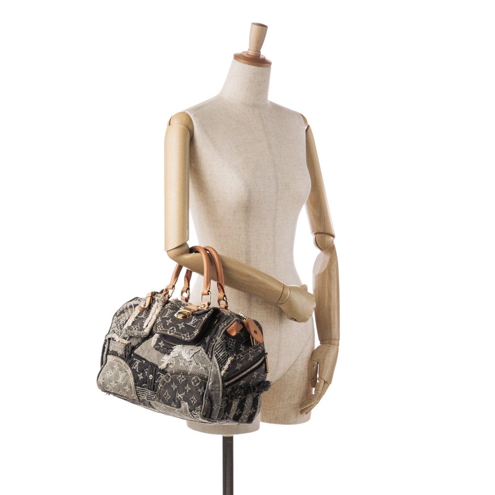 Product Details: Gray Louis Vuitton Monogram Denim Patchwork Speedy 30 Boston Bag. The Patchwork Speedy 30 features a denim body, rolled leather top handles, a top zip closure, exterior zip and flap pockets, and interior slip pockets. 8.3′ L x 11.4′ W x 6.7′ D, 4.3′ drop. Serial number TH 2017.