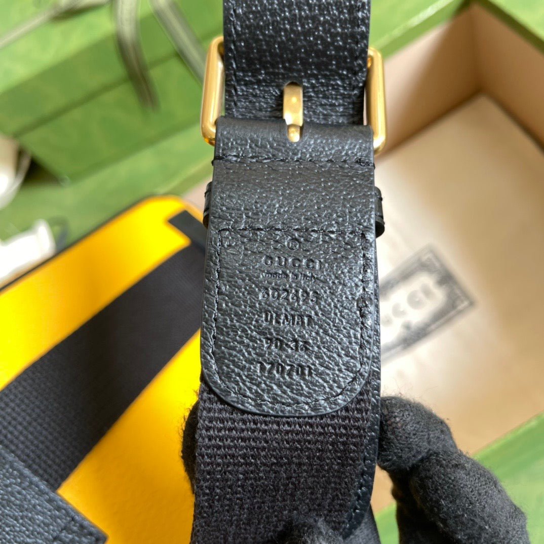 During its 100 years, Gucci has established itself as one of the most influential fashion houses. Becoming a status quo and household name within pop culture, songs have repeatedly celebrated Gucci with their lyrics. Paying homage to that, a mix of pieces from Aria are defined by lyrics of contemporary songs courtesy of © Sony Music Publishing. Crafted from yellow leather, this belt bag is defined by a print featuring the words to “The R” By E. Barrier and W. Griffin.