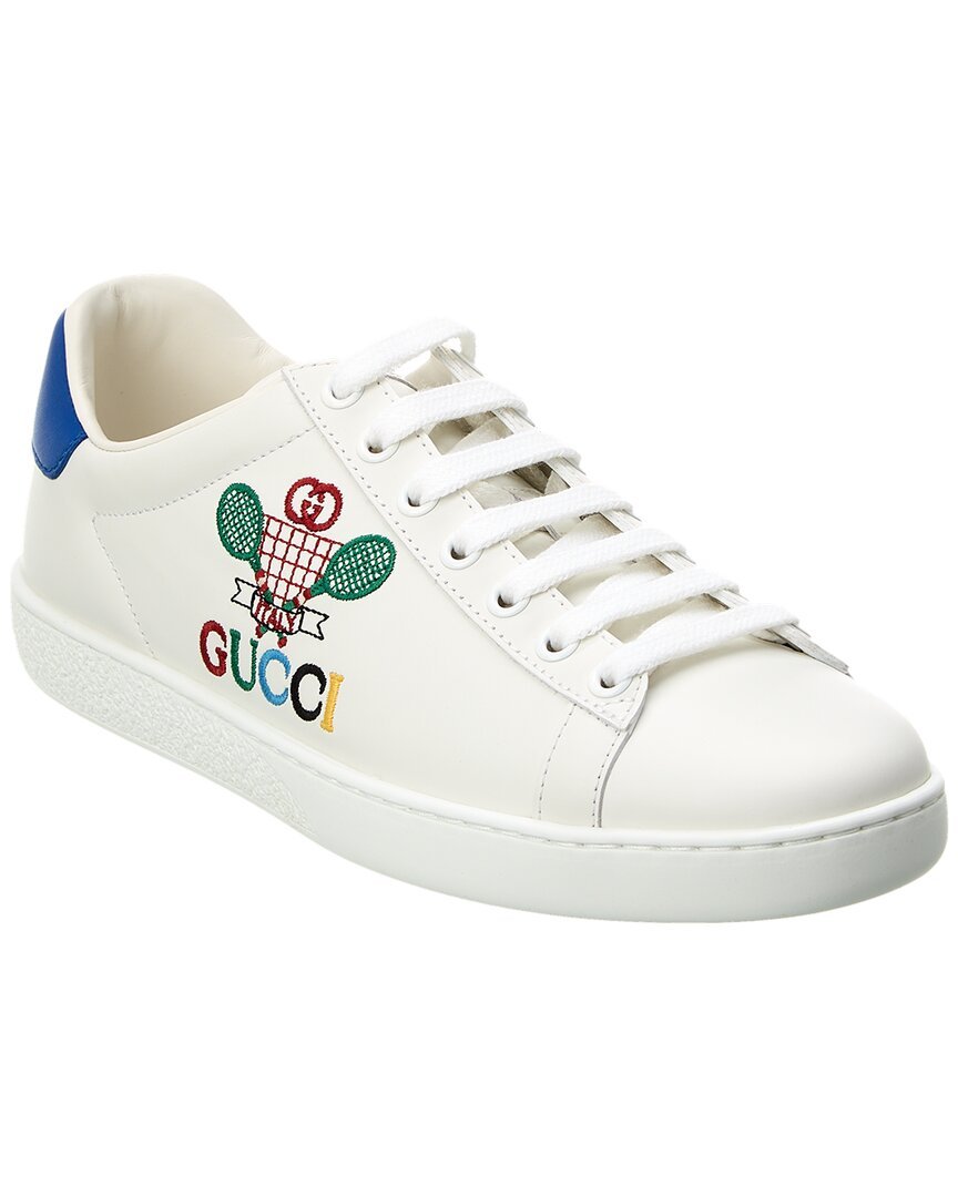 - Ace Tennis Leather Sneaker In White And Blue Leather With Embroidered Detailing