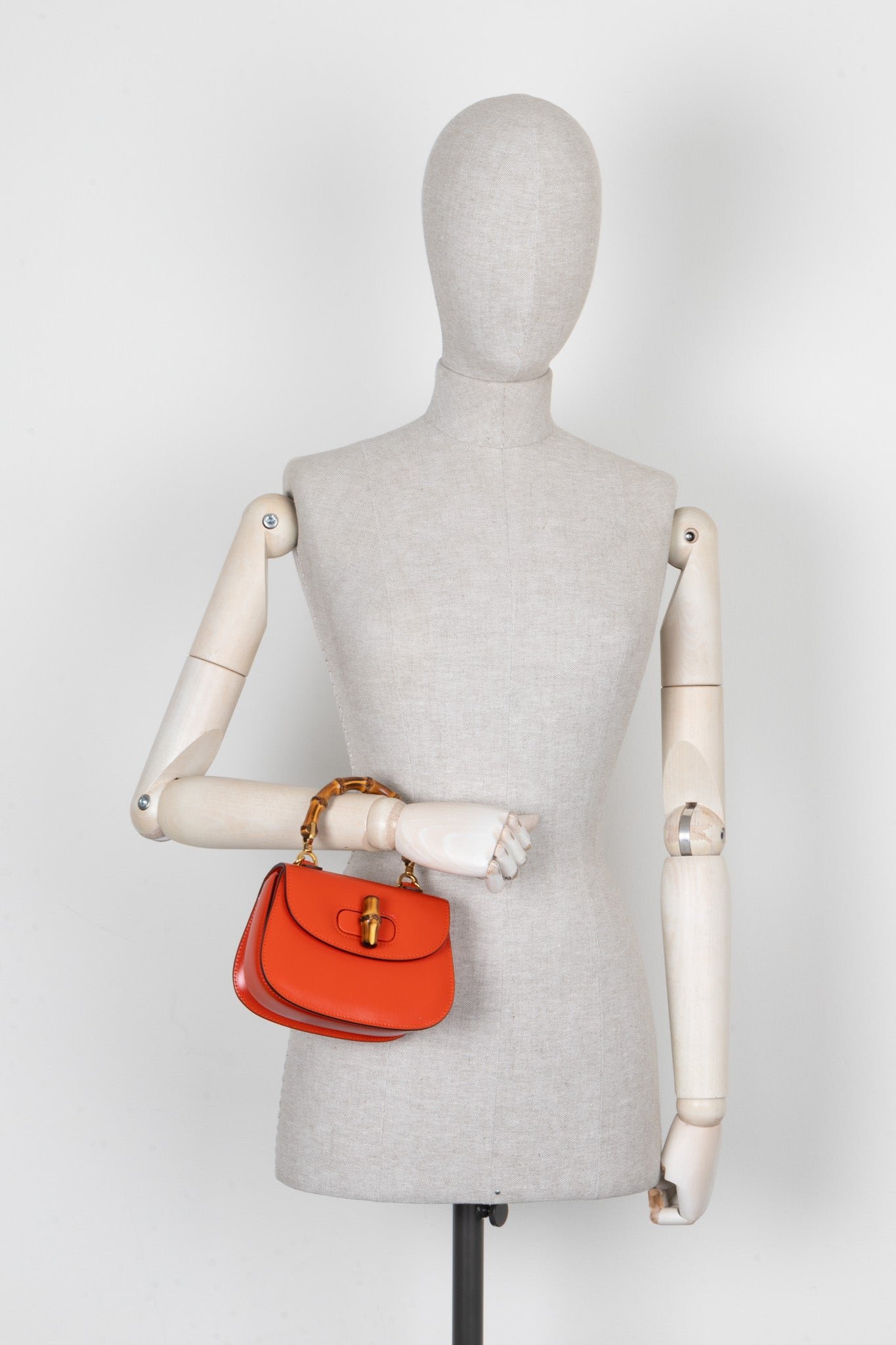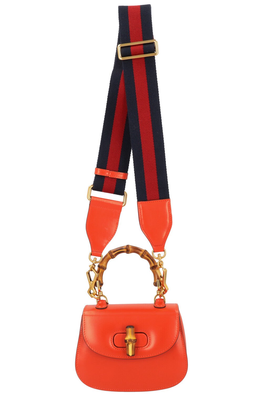 Die Gucci 1947 Mini Bamboo Crossbody Bag – ikonisches Design in leuchtendem Orange. Der charakteristische Bambusgriff trifft auf eine kompakte, moderne Silhouette. Mit zwei abnehmbaren Trageriemen – einem breiten Canvas-Strap für einen lässigen Look und einem schmalen Lederriemen für elegante Auftritte – passt sie sich jedem Anlass an. Perfekt für das Nötigste, begleitet dich diese Tasche mühelos von Tag zu Nacht.