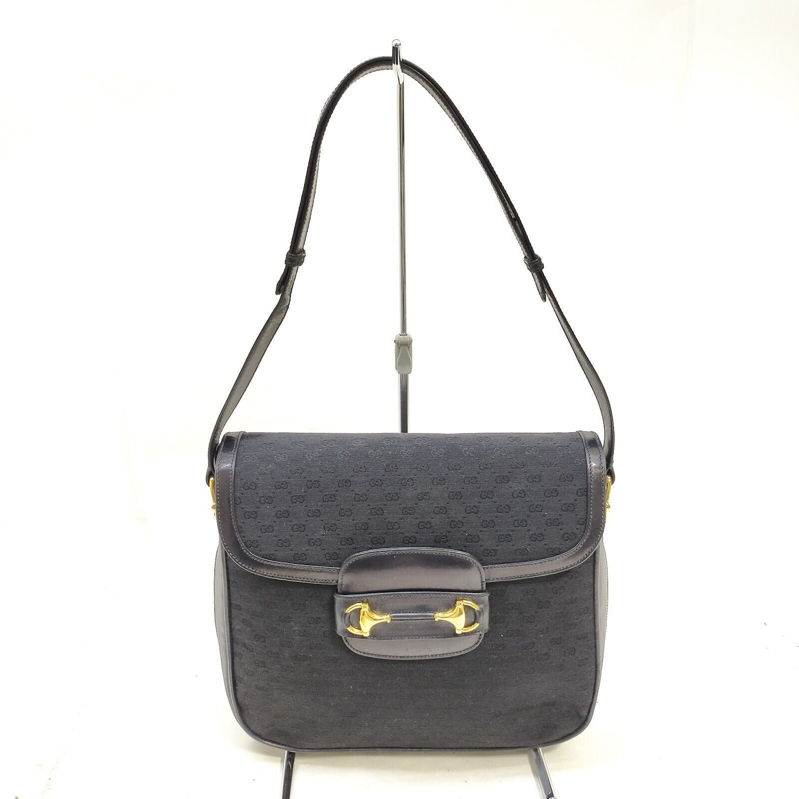 The bag is a large shoulder handbag. The body is made of blue micro Guccissima print on canvas and navy blue leather with bold gold hardware, including a large equestrian horse-bit accent in the center where it fastens and on the sides where the straps are attached! The square-shaped handbag can hold a lot more than you think!