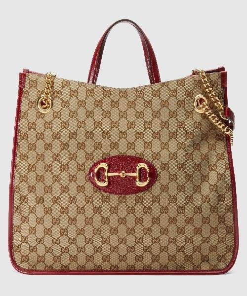 Designed with rounded edges and a soft shape, the tote bag is introduced to the Gucci 1955 Horsebit collection for Spring Summer 2020. Made from GG Supreme canvas with brown leather trim, the large double-handled silhouette has a chain shoulder strap that complements its modern spirit, finished with an organizational interior and magnetic snap closure. The collection unifies details first introduced on the original bag that inspired the line from over six decades ago with a modern spirit, highlighting the Horsebit. Part of Gucci’s genetic code, the double ring and bar design has been established as one of the most distinctive elements among the House symbols borrowed from the equestrian world.