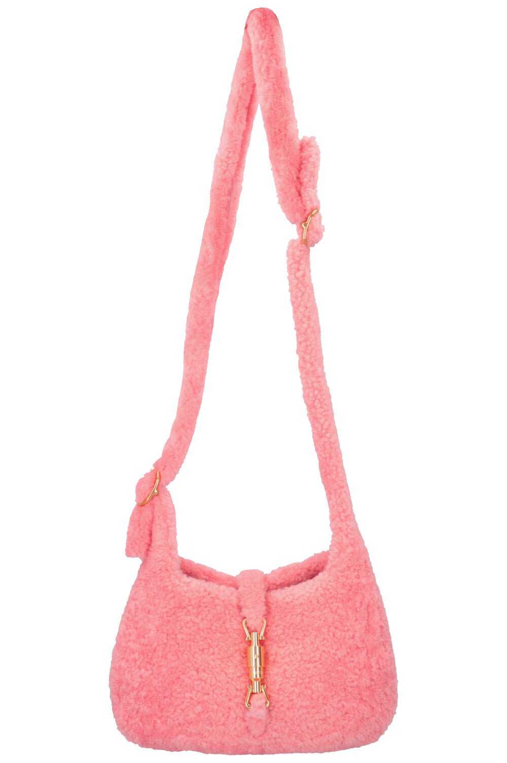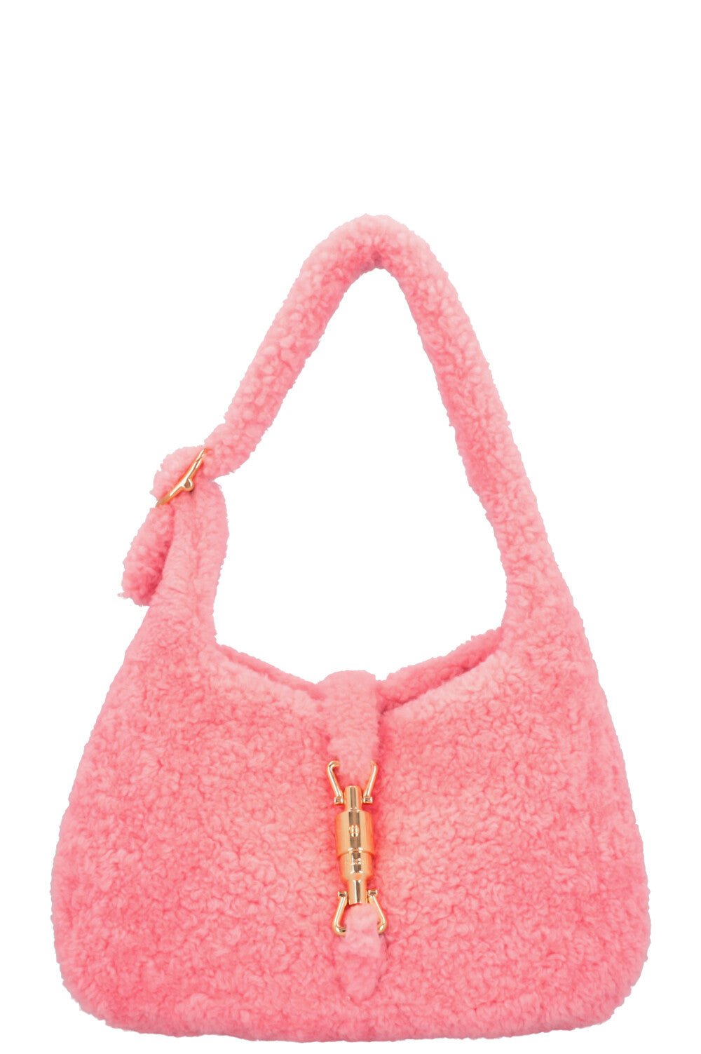 Die Gucci 1961 Shearling Jackie in zartem Rosa ist eine ikonische Tasche, die Luxus und Verspieltheit auf einzigartige Weise vereint. Ihr weiches Shearling-Material und das klassische Jackie-Design schaffen eine harmonische Verbindung von Retro-Charme und modernem Stil. Mit ihrer unverwechselbaren Silhouette ist sie ein echter Blickfang und ein eleganter Begleiter für besondere Anlässe oder stilvolle Alltagslooks.