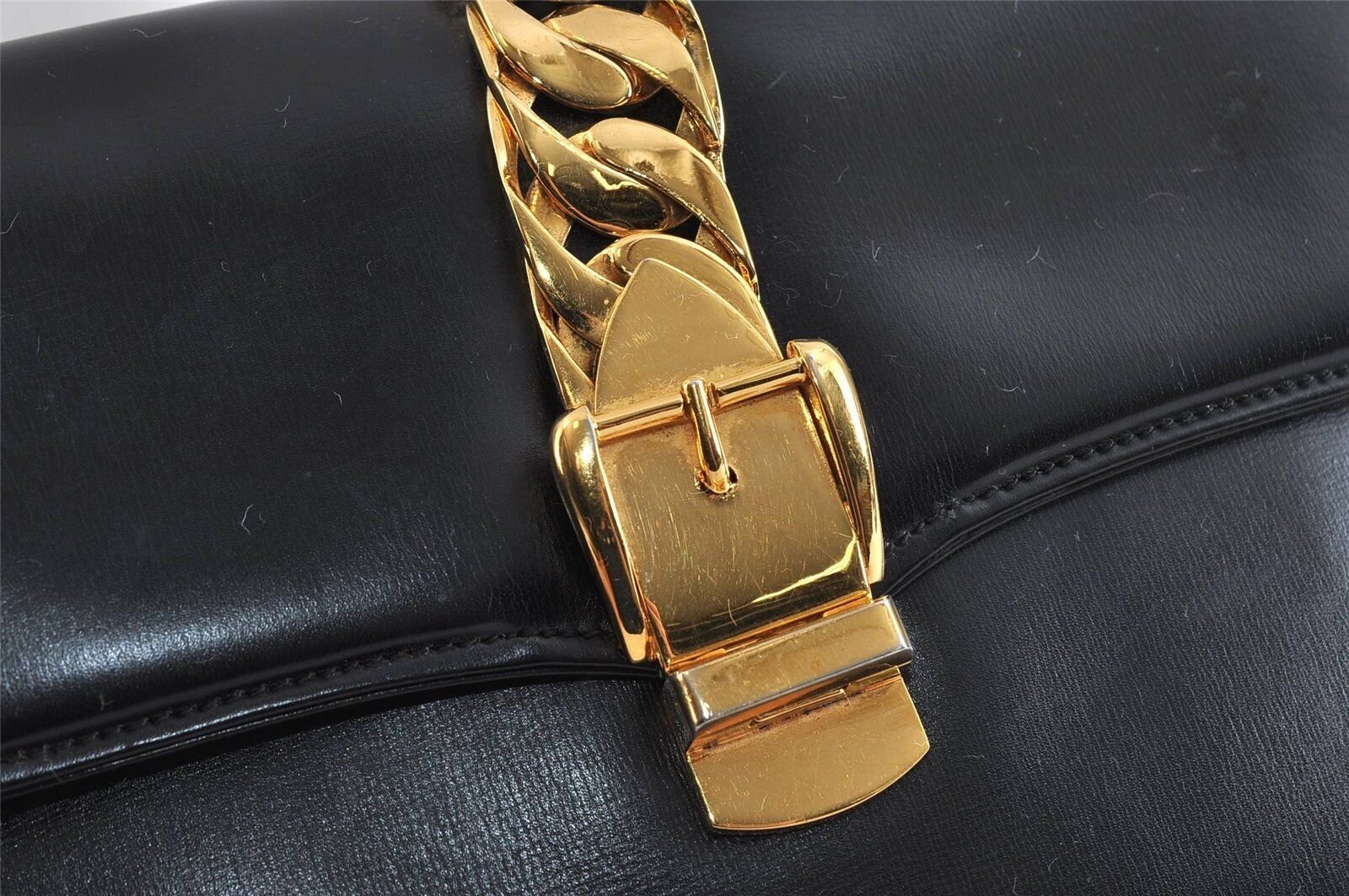 For sale is a RARE, Gucci, 1969 Sylvie navy leather, envelope top, shoulder purse with an adjustable strap with a bold gold zipper accent down the center and as the locking closure at the center! This is a rare, early style from Gucci that was re- released in 2022. It will be the only navy blue purse you will need!