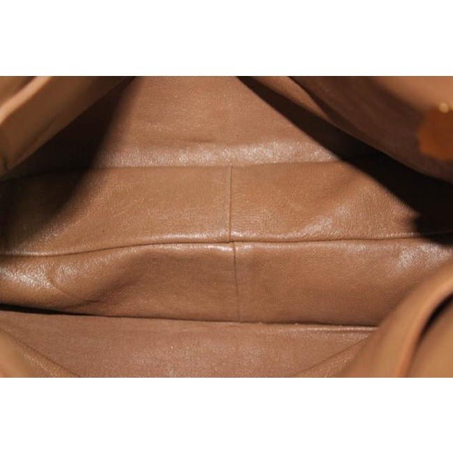 The bag has minimal wear to the lining. The purse is roomy and has an organized design that is perfect for carrying all of your essentials and then some! It has a flap snap top closure, multiple compartments, and multiple slot and zip closure pockets. The bottom is expandable, so it can hold quite a bit! The strap can be adjusted to two lengths and is held in place by a bold gold accent on each side. The hardware is a gold tone metal.
