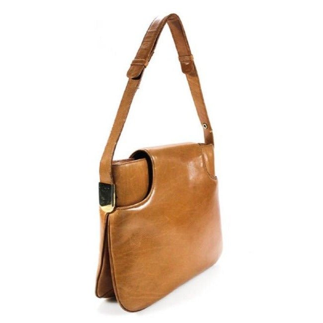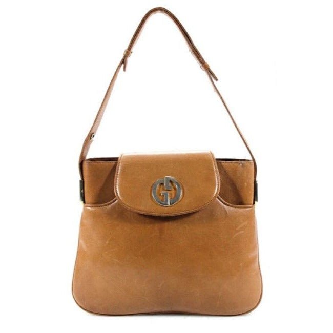 For sale is a unique, vintage, mod, Gucci, camel leather handbag with a gold GG flap snap lock! It is a unique vintage style that would be a great used as your signature camel purse! Gucci brought back this style from 1973 and the MSRP on similar styles is $2900+!