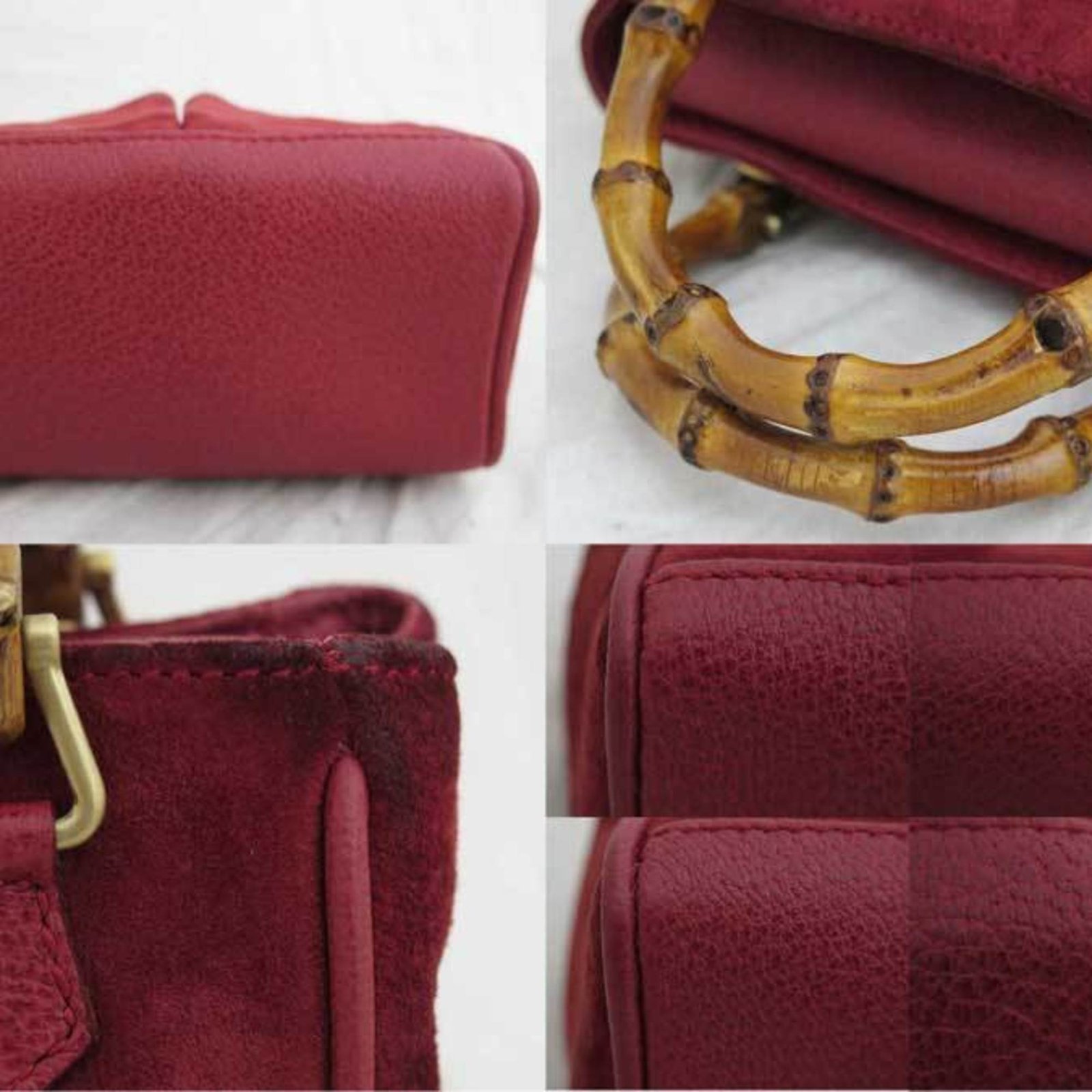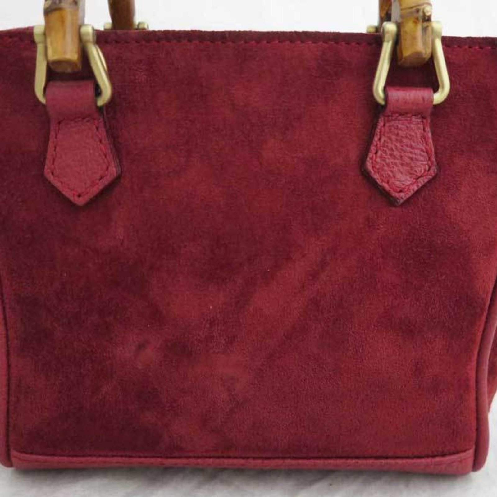 Gucci 2way Bag Bamboo Red Suede Leather Mini Handbag Shoulder Ladies