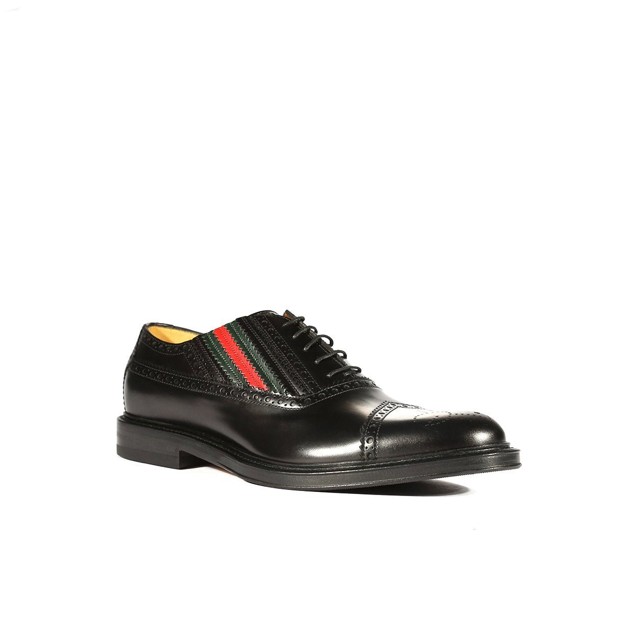 • Gucci 547592 0GQ30 1078 Men’s Shoes Black Calf-Skin Leather Cap-Toe Oxfords (GGM1719)