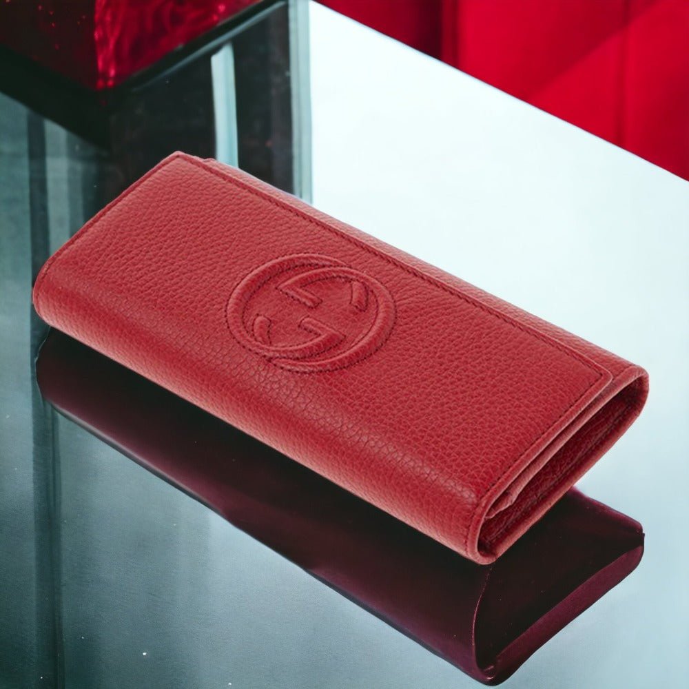 This classic wallet by Gucci is crafted from red calf-skin leather for a luxurious look and feel. With its flap closure and GGWW3609 interior embossing, this wallet offers sophisticated and secure storage. The perfect blend of style and function.