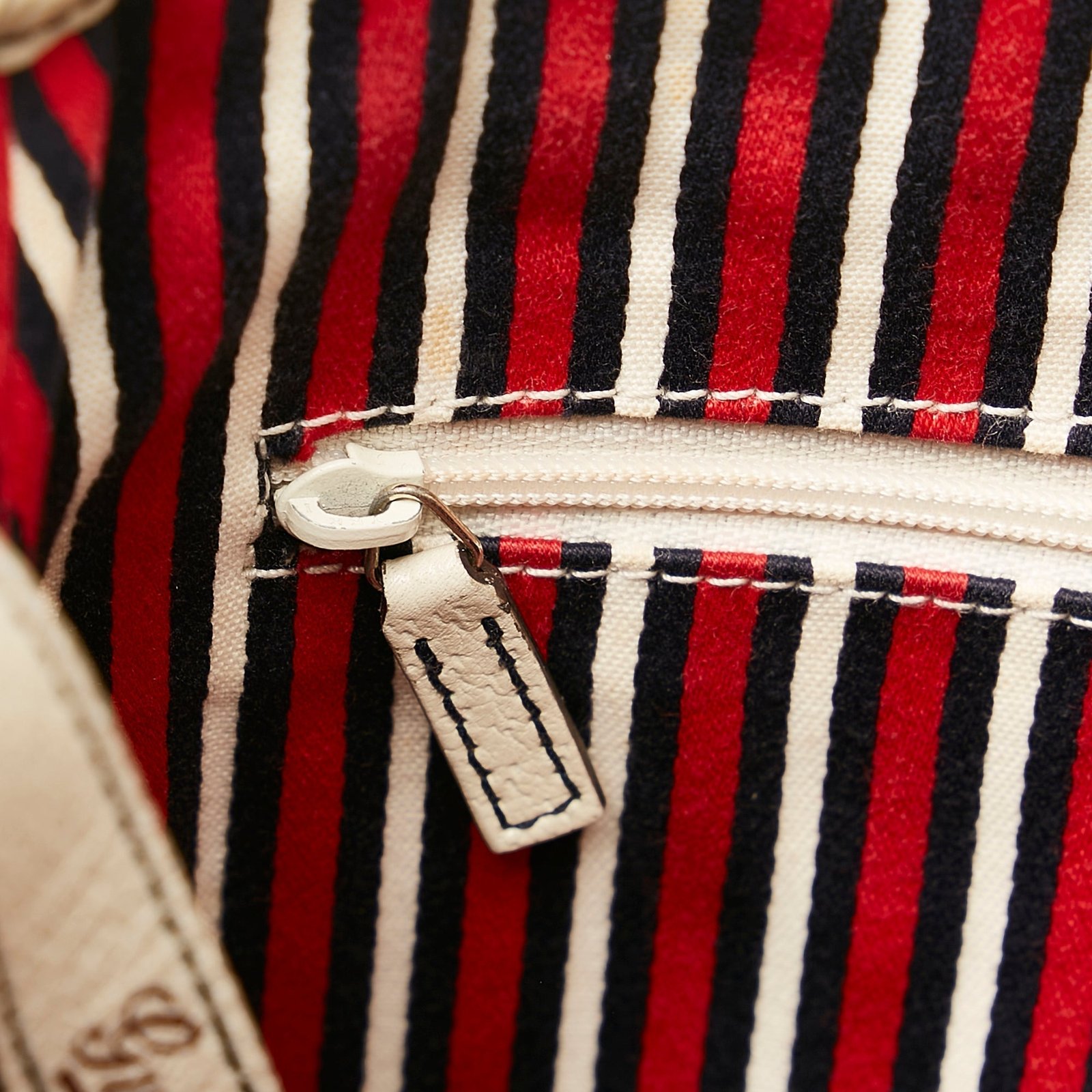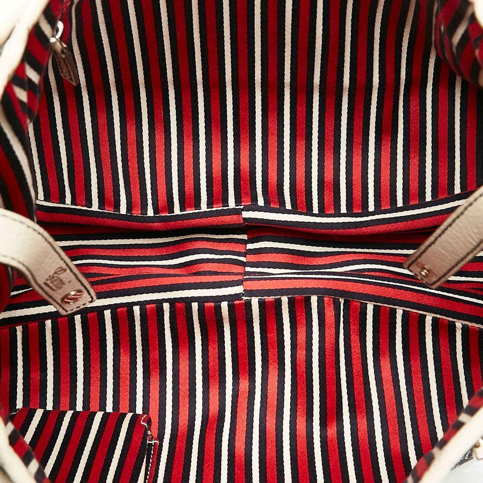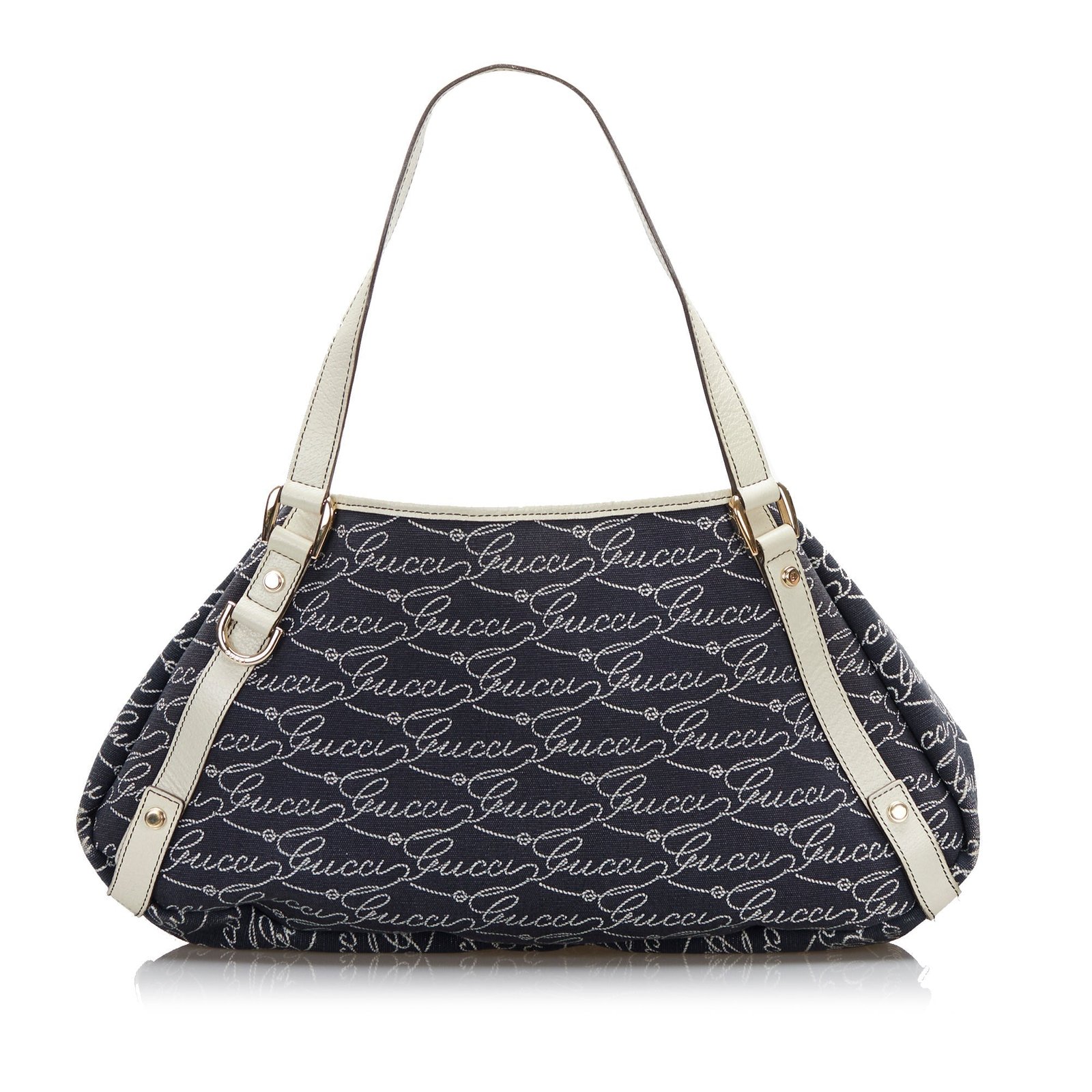 The Abbey D-Ring shoulder bag features a canvas body with leather trim, flat leather straps, an open top, and interior zip and slip pocket.