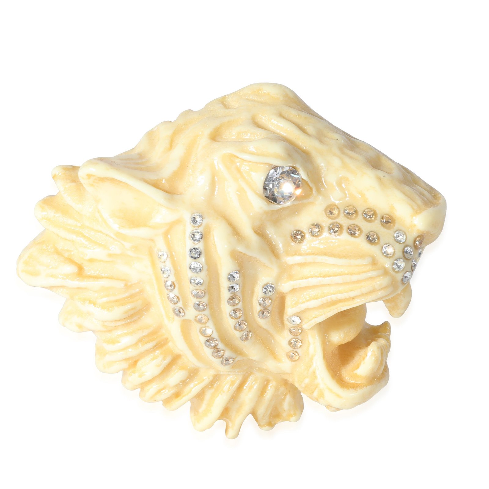 Listing Title: Gucci Resin & Crystal Tigers Head Brooch