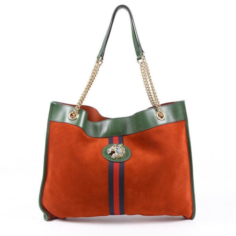 Gucci Bag Rajah Red Green Suede Sylvie Web Tote