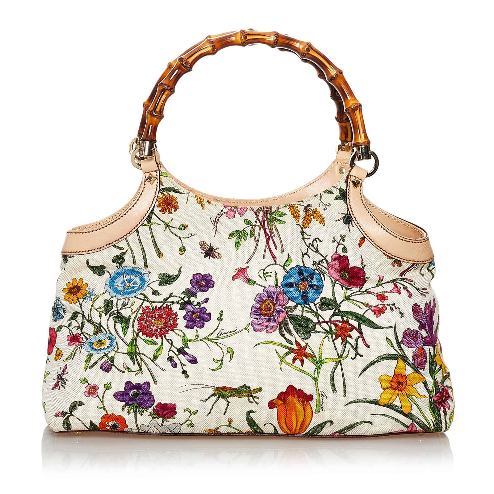 Gucci Bamboo Flora Canvas Handbag | AlmaBagz